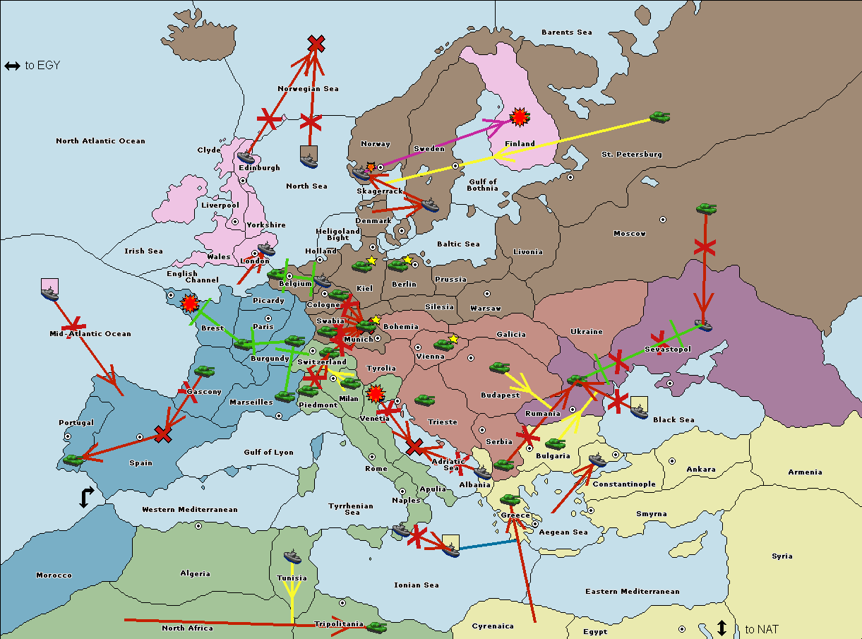 The fleet at Rumania support move to Bulgaria from Constantinople.