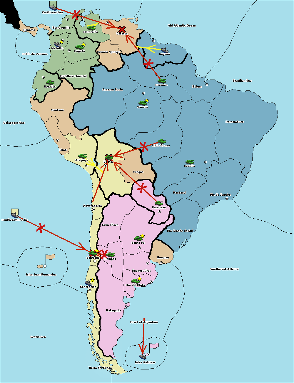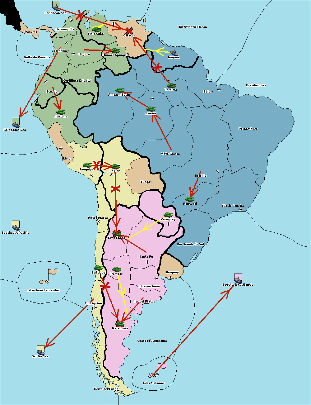 The army at Orinoco Springs move to Cordillera Oriental.