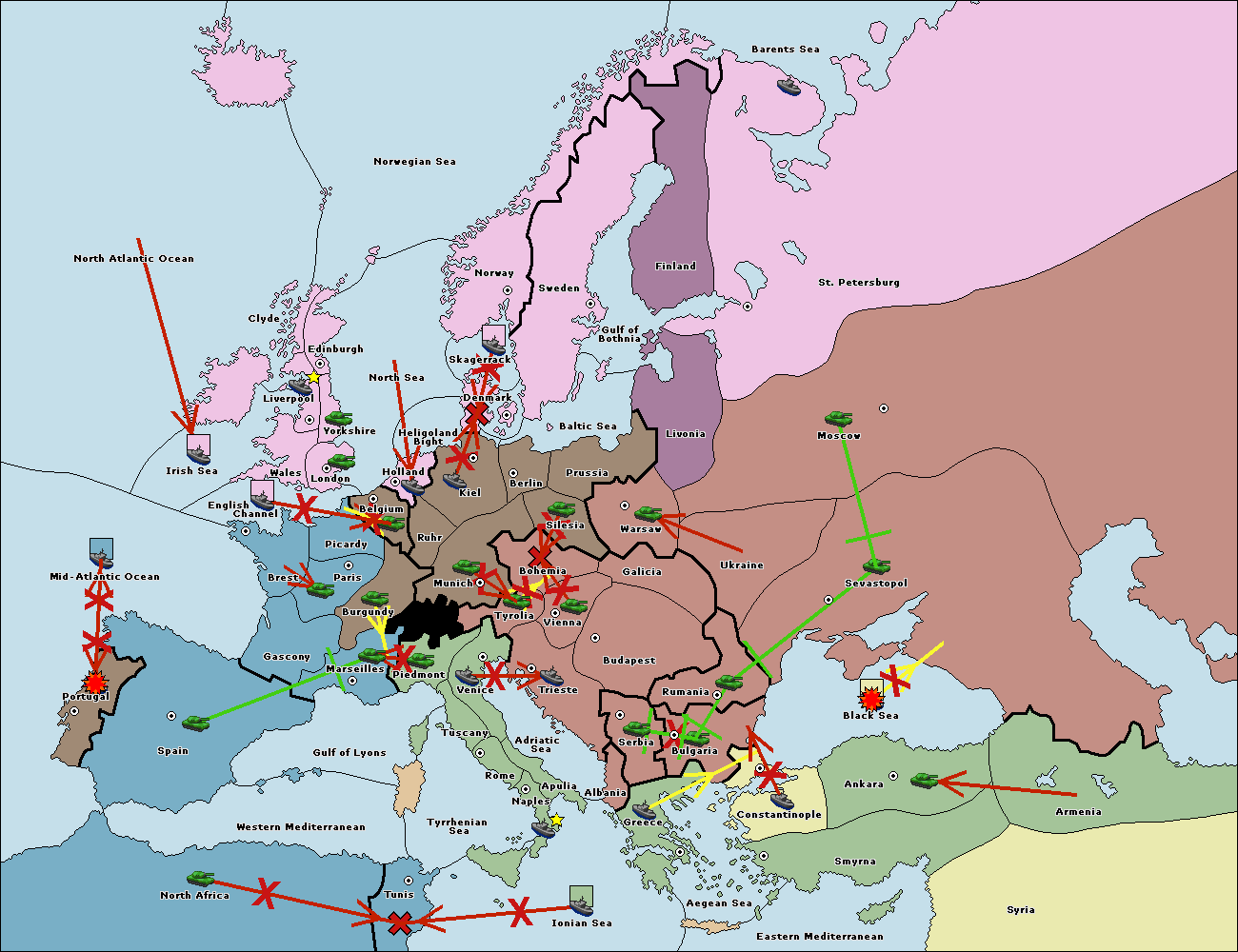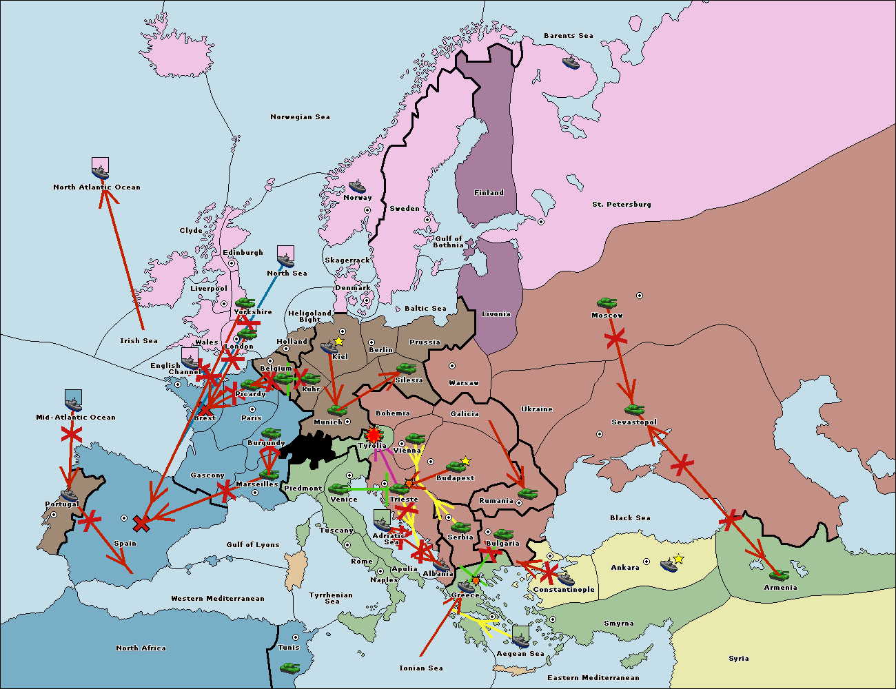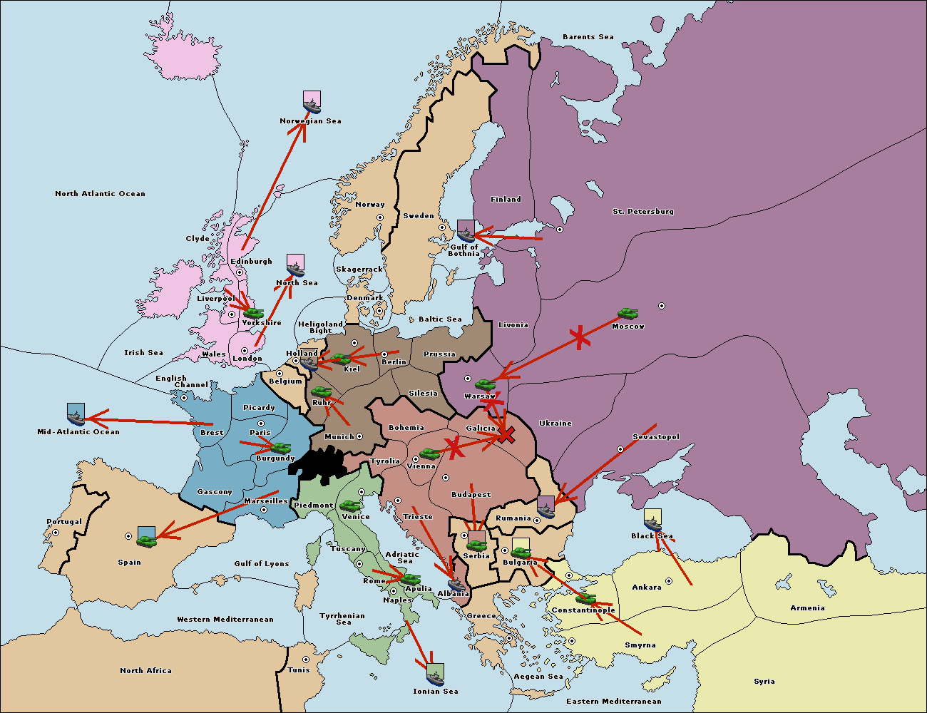 The fleet at Mid-Atlantic Ocean move to Western Mediterranean.