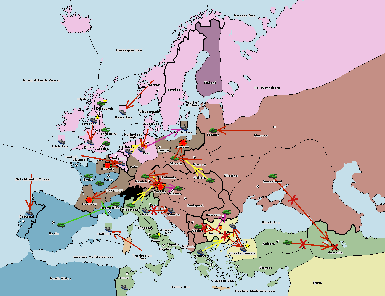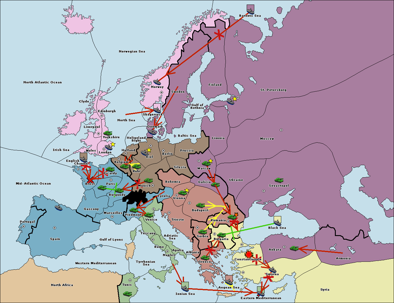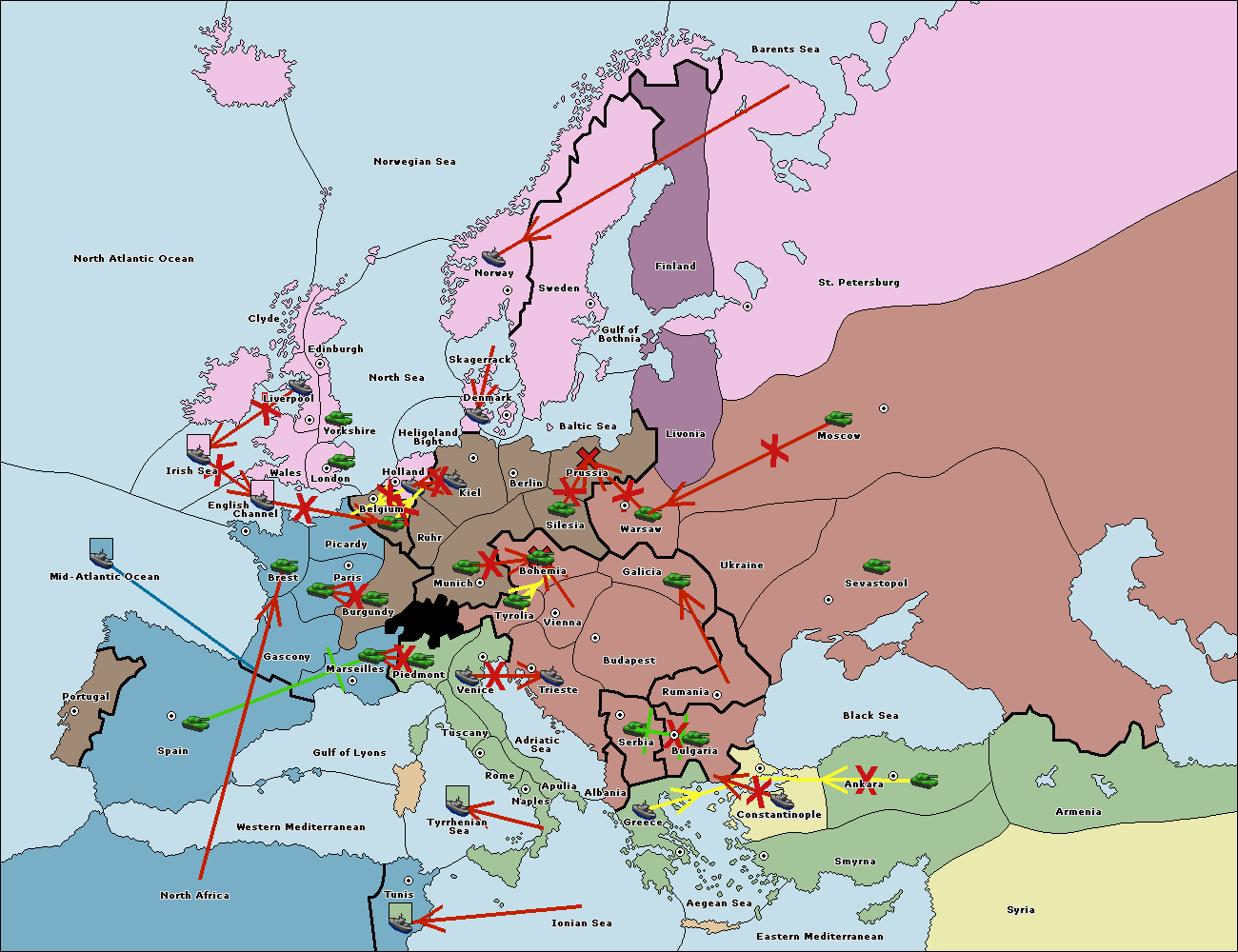The fleet at Mid-Atlantic Ocean move to Western Mediterranean.