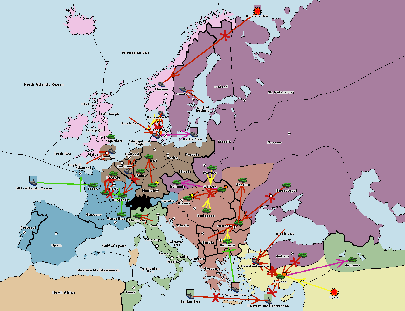 The fleet at Syria support move to Smyrna from Constantinople.