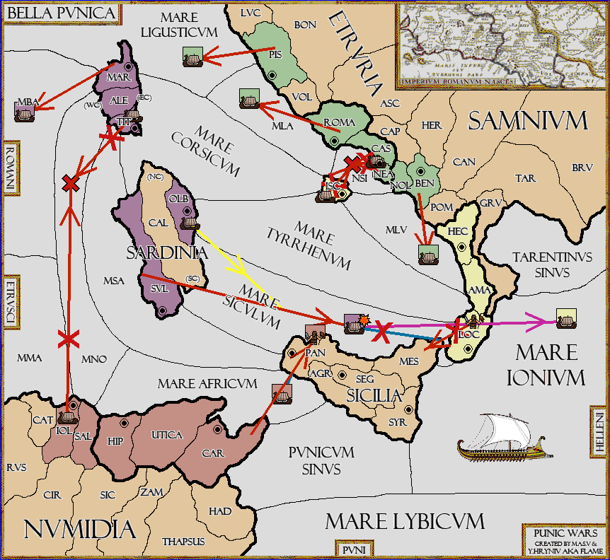 The fleet at Mare Siculum move to Mare Tyrrhenum.