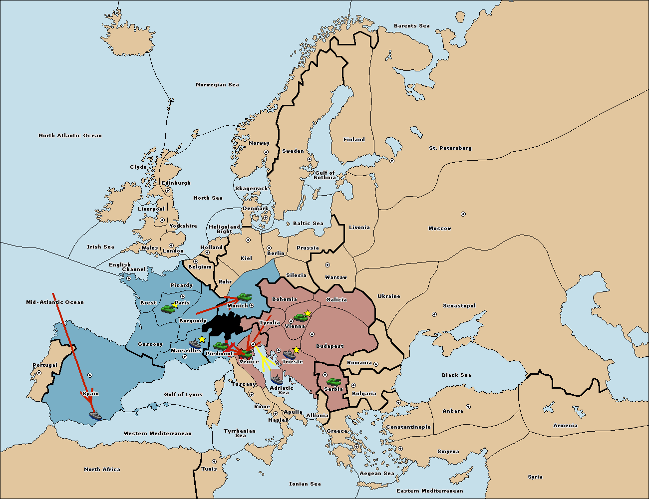 The fleet at Adriatic Sea support move to Venice from Tyrolia.