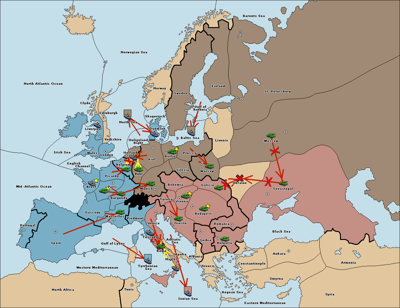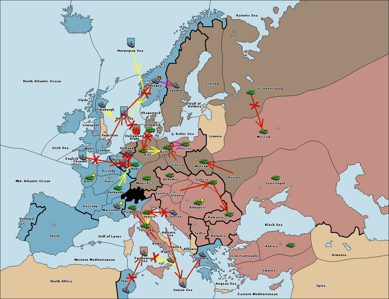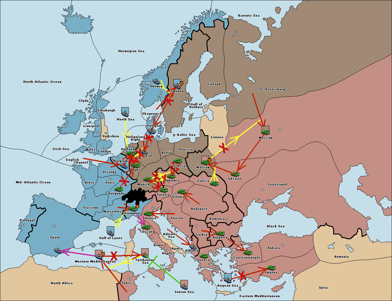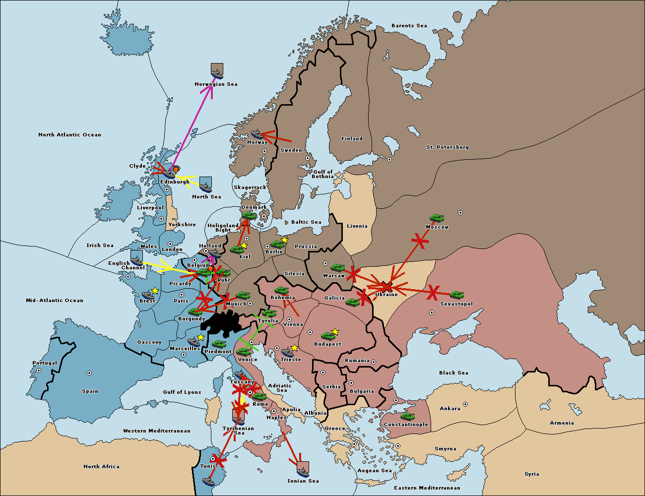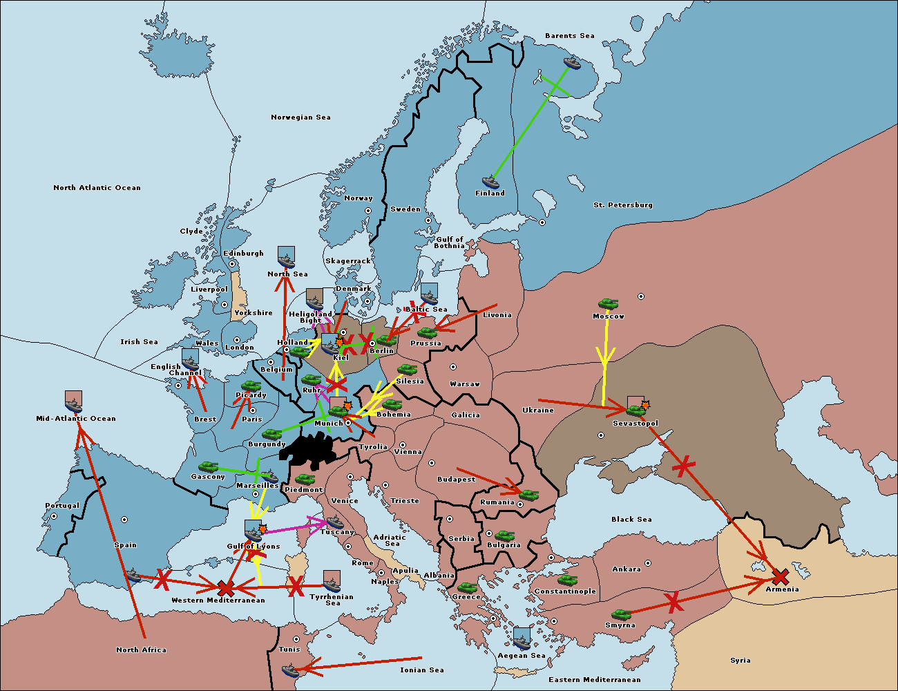 The fleet at Tyrrhenian Sea support move to Gulf of Lyons from Tuscany.