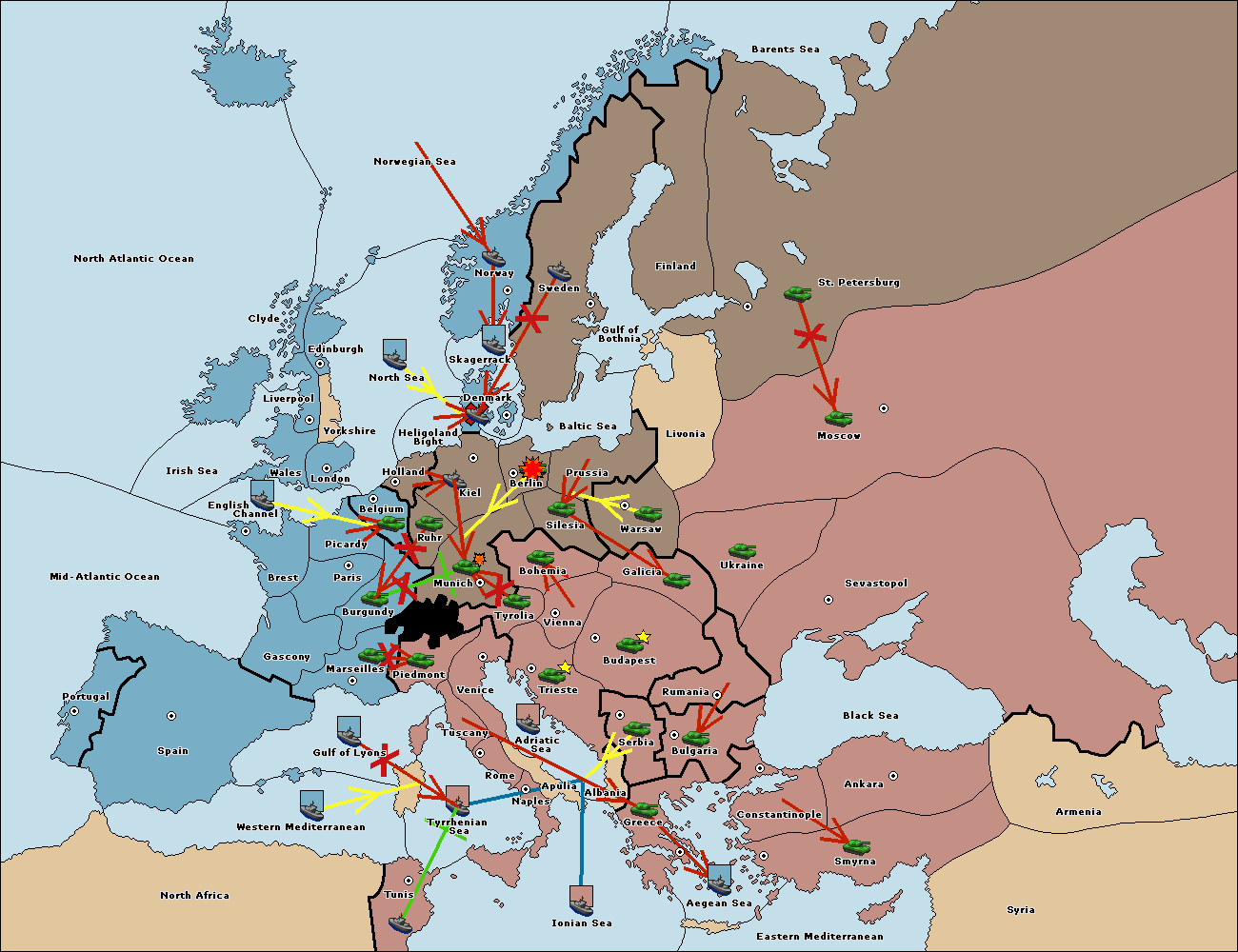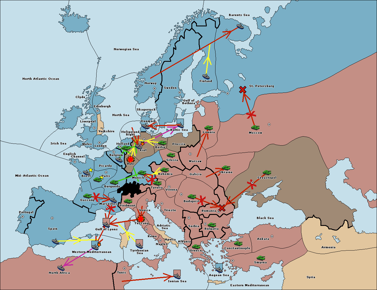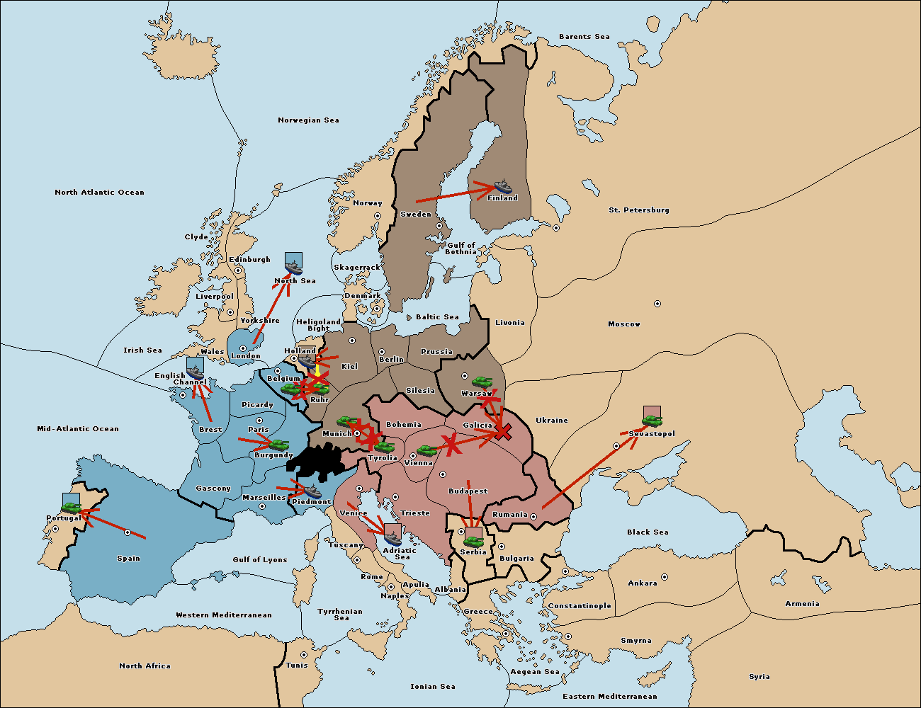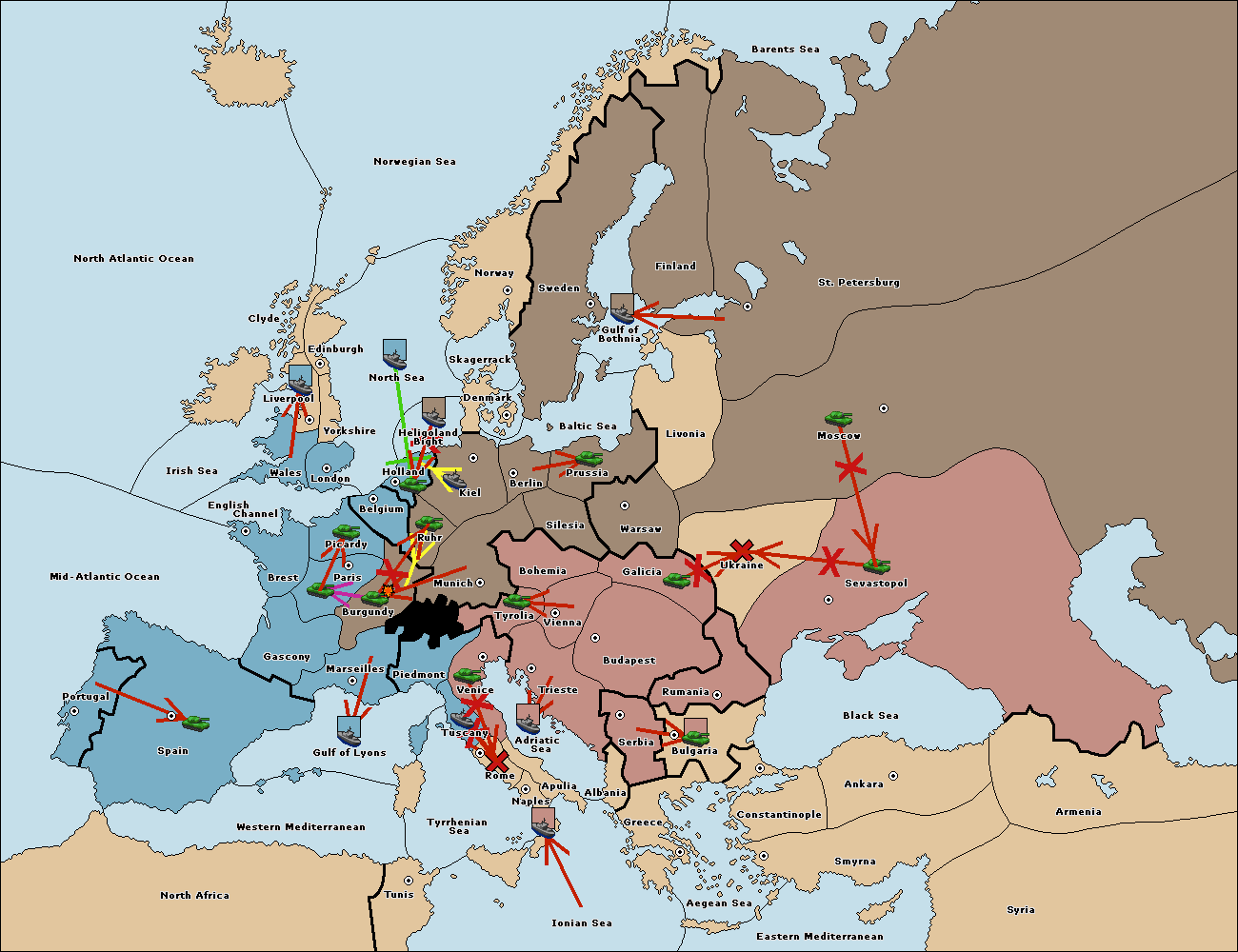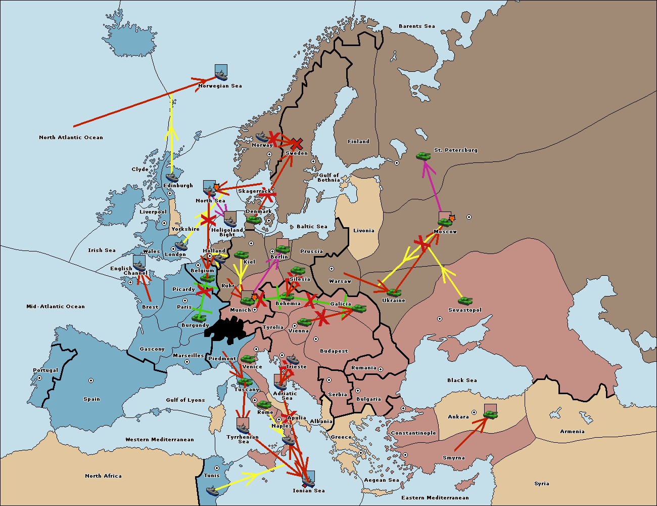 The fleet at Tyrrhenian Sea support move to Gulf of Lyons from Tuscany.
