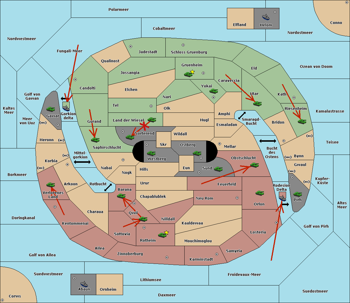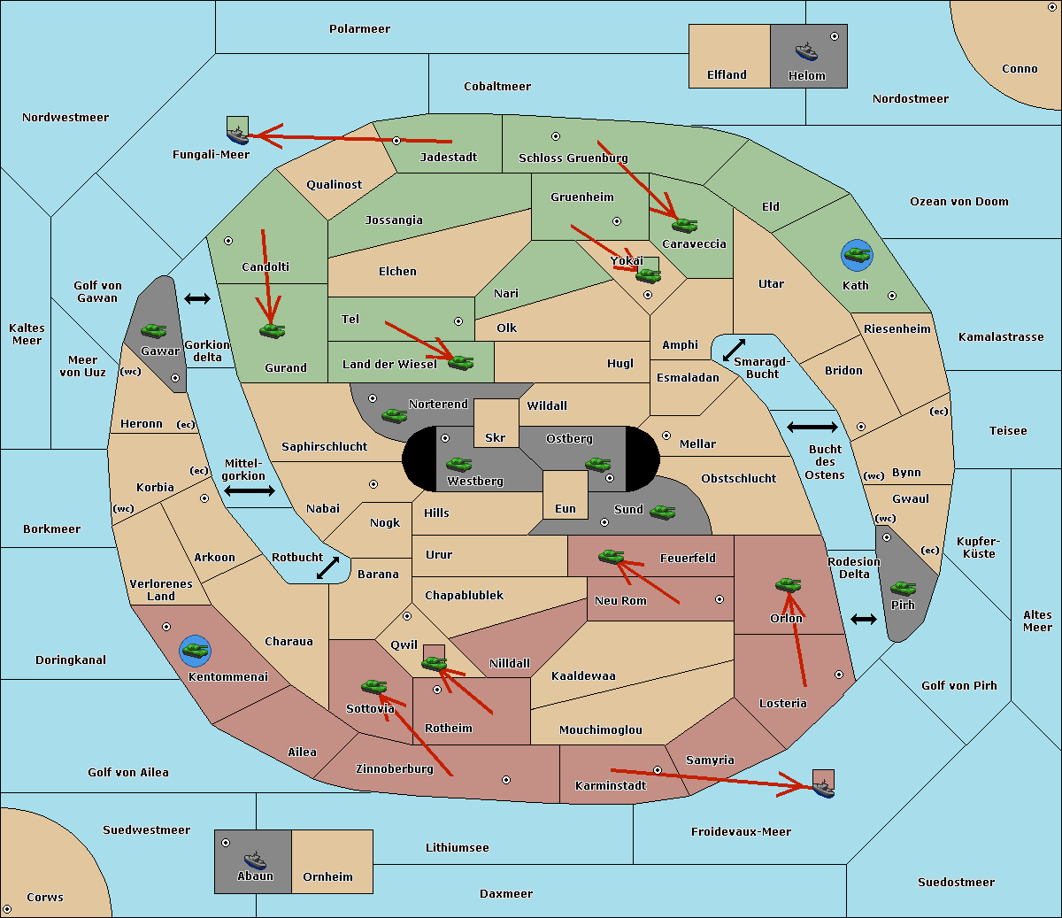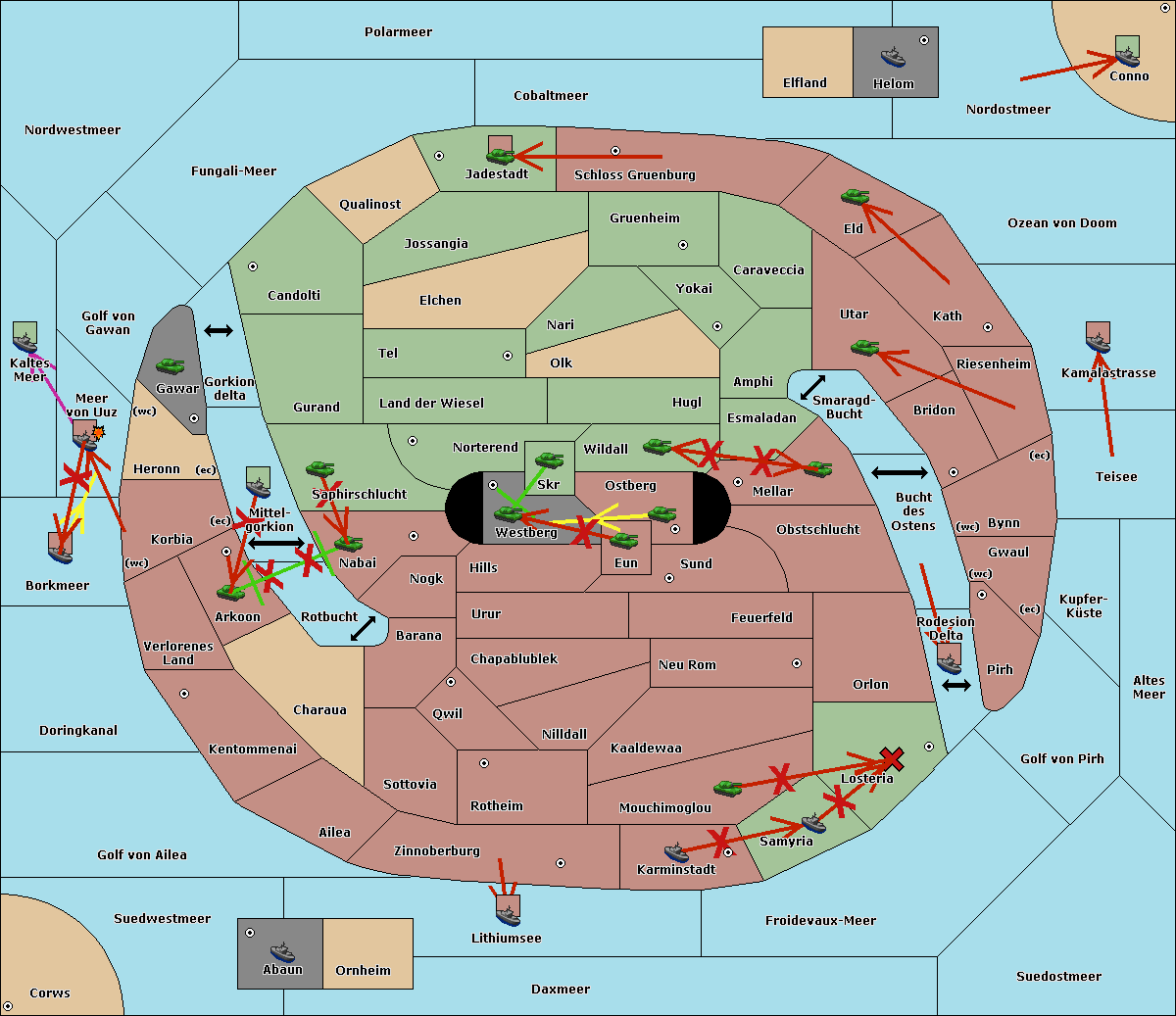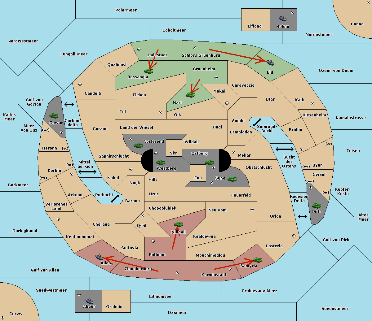 The army at Verlorenes Land move to Arkoon.