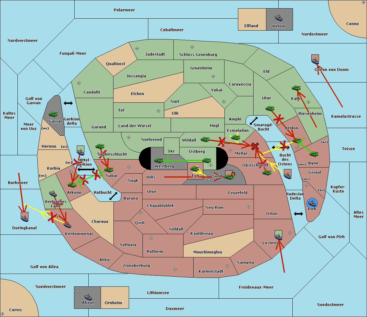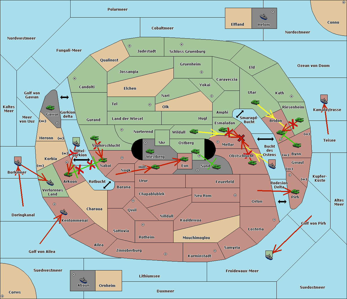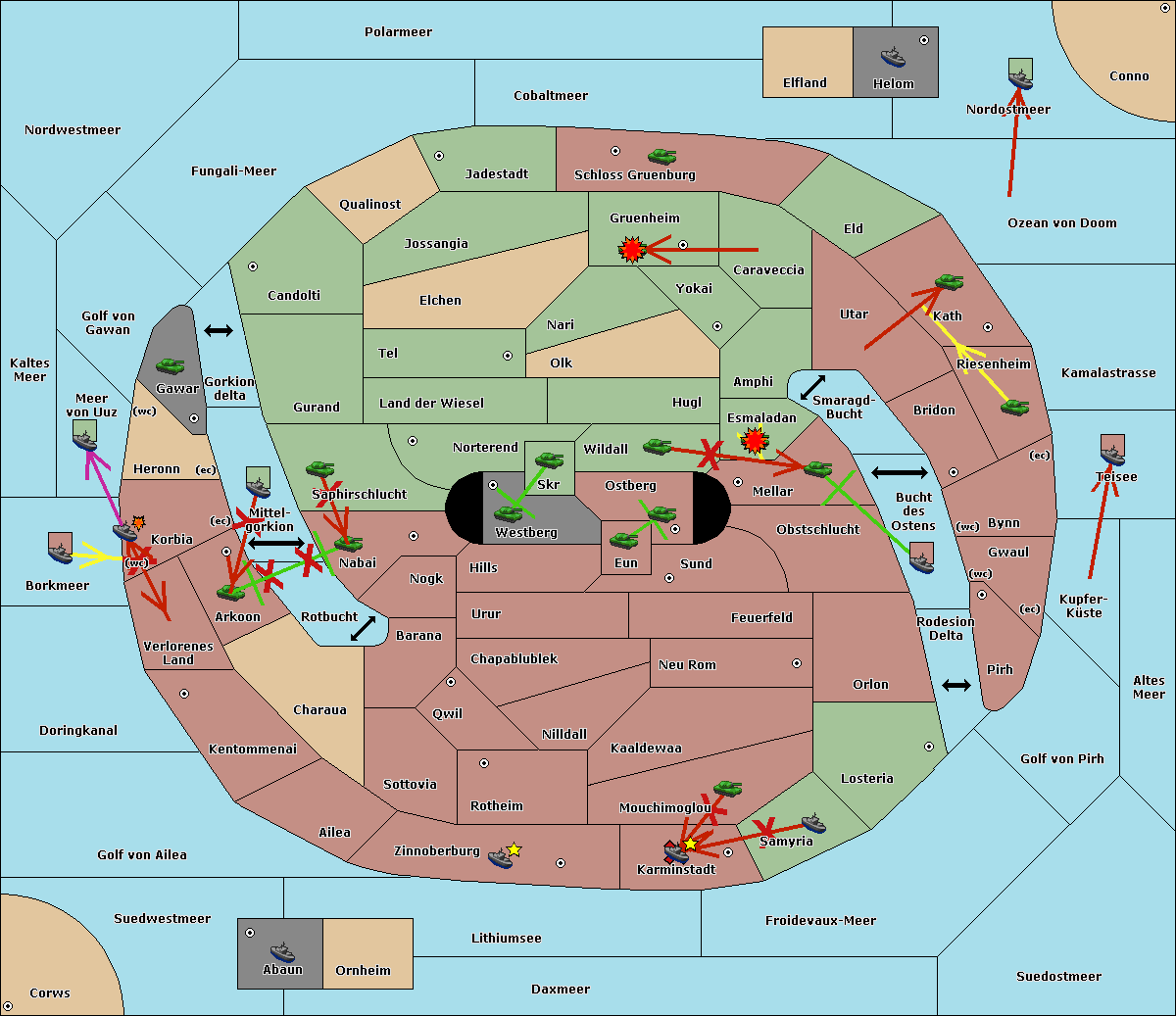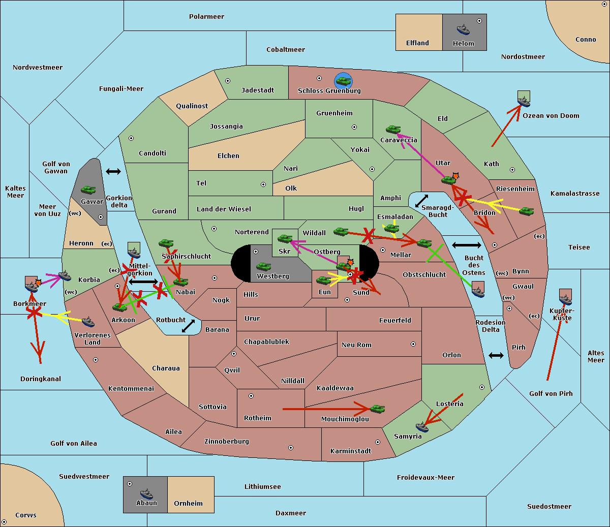 The fleet at Schloss Gruenburg move to Ozean von Doom.
