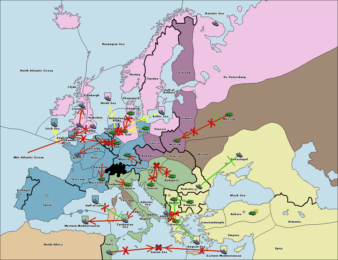 The fleet at Adriatic Sea support move to Ionian Sea from Tunis.