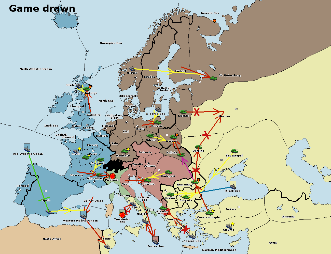 На сервере установлен новый вариант 1900. Вариация классического варианта с исторически более достоверной картой, интересными спецправилами и еще большим взаимодействием между всеми семью державами. Приятной игры! - Flame. |