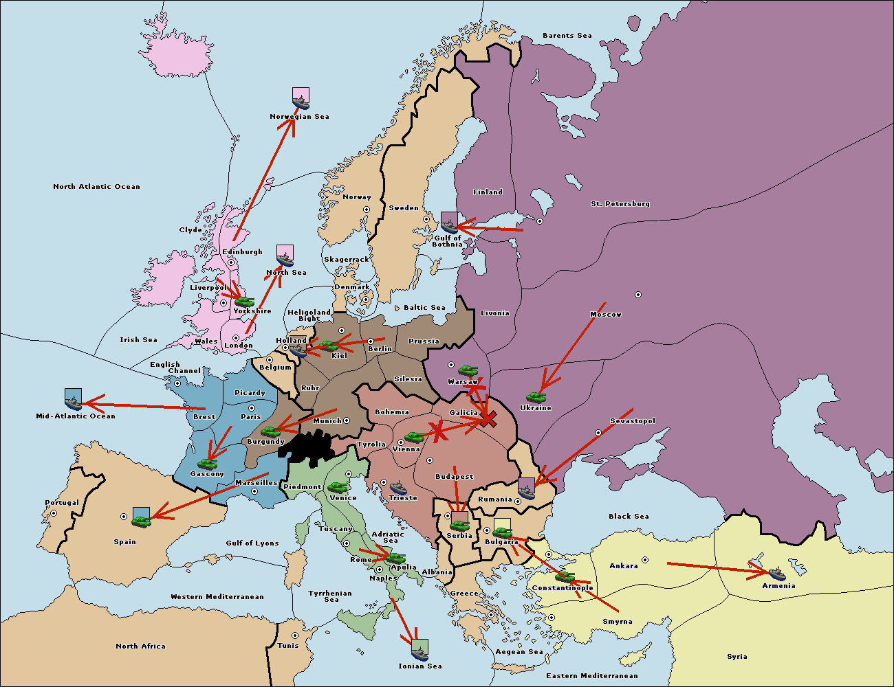 The fleet at Sevastopol support move to Rumania from Galicia.