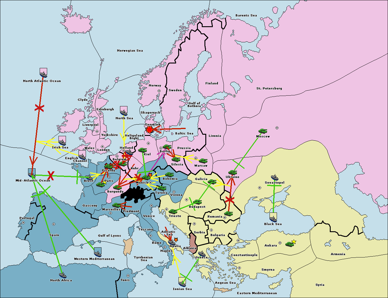 The fleet at Sweden support hold to Denmark.