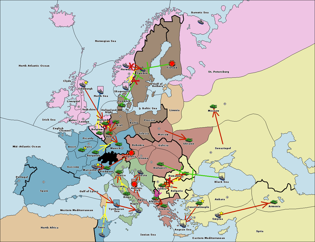 The fleet at Tyrrhenian Sea support move to Naples from Ionian Sea.
