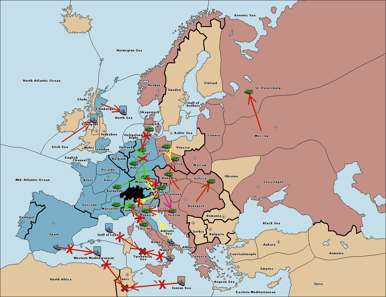 The fleet at Spain (South Coast) move to Western Mediterranean.