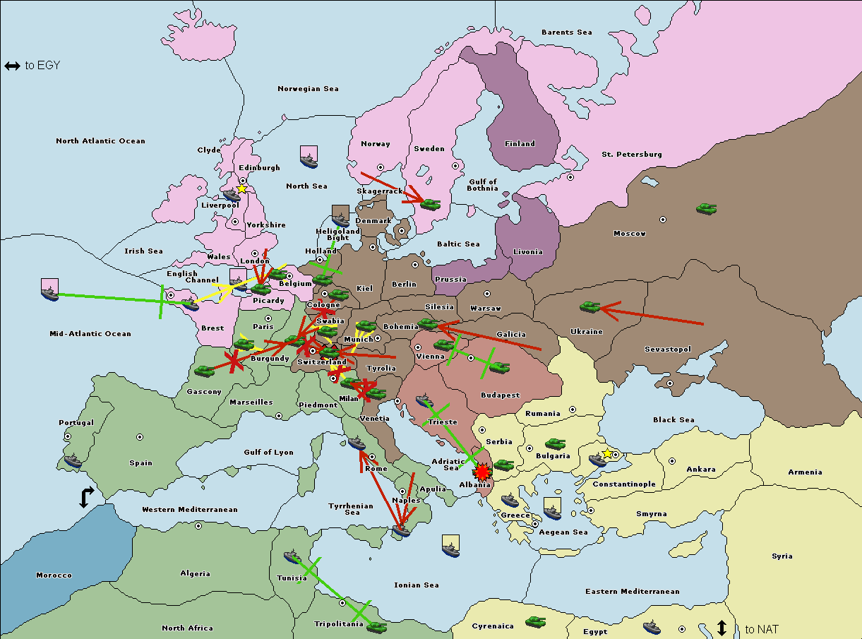 The fleet at Mid-Atlantic Ocean move to Western Mediterranean.