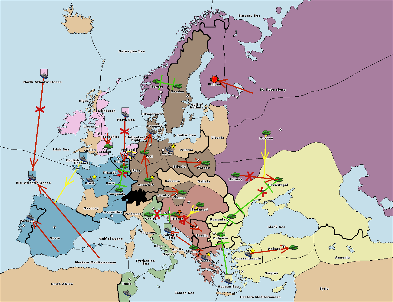 The fleet at Aegean Sea support hold to Bulgaria.