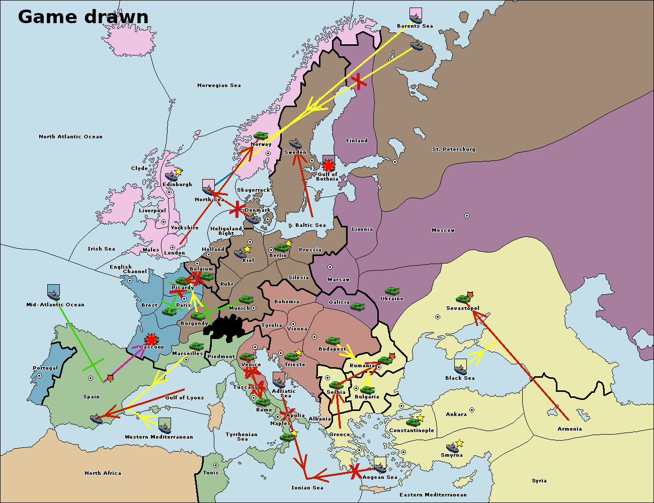 На сервере установлен новый вариант 1900. Вариация классического варианта с исторически более достоверной картой, интересными спецправилами и еще большим взаимодействием между всеми семью державами. Приятной игры! - Flame. |