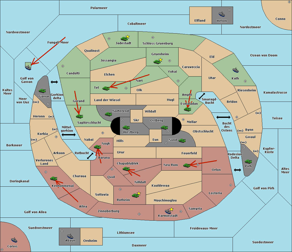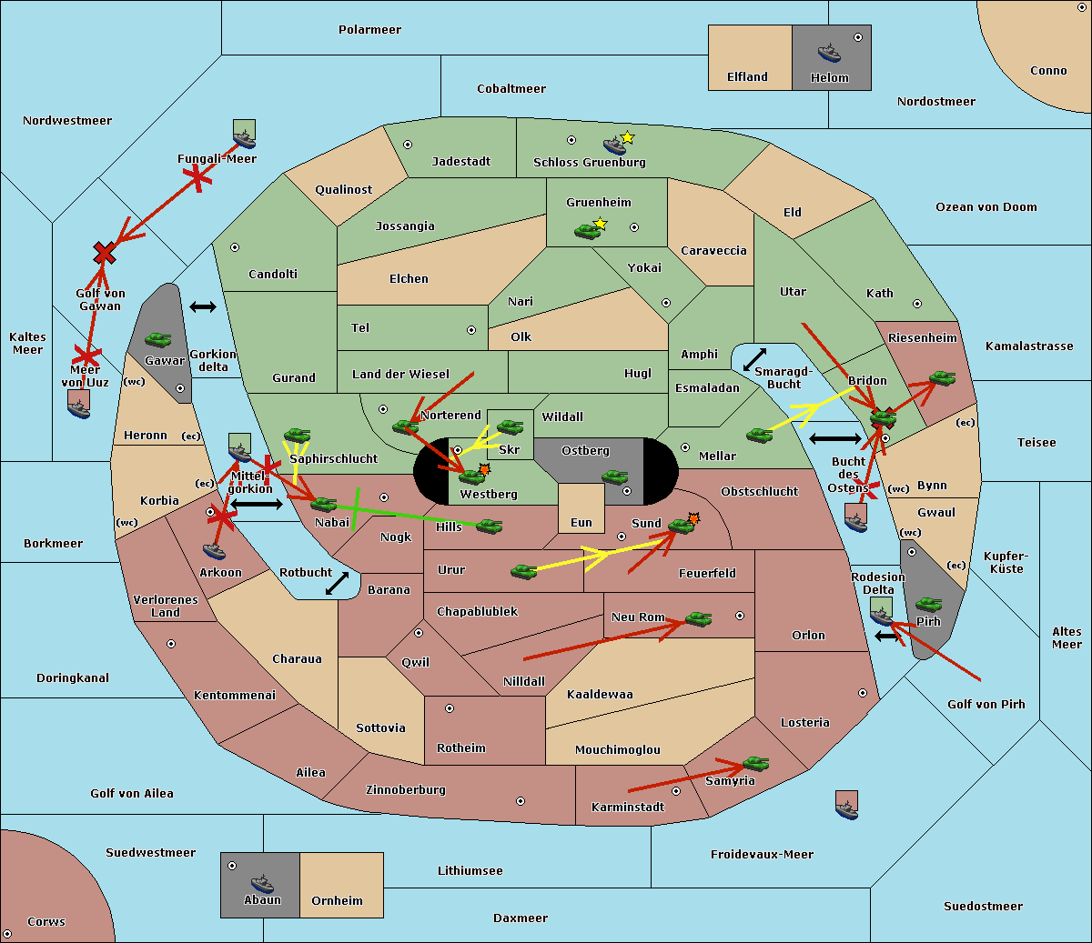 The fleet at Schloss Gruenburg move to Ozean von Doom.