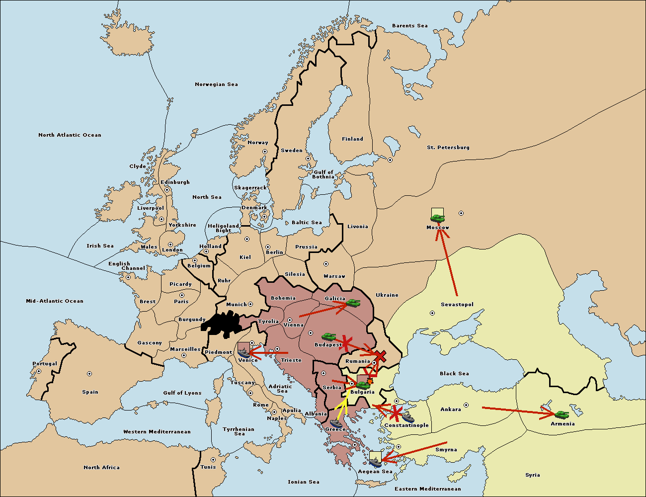 The fleet at Greece support hold to Bulgaria.