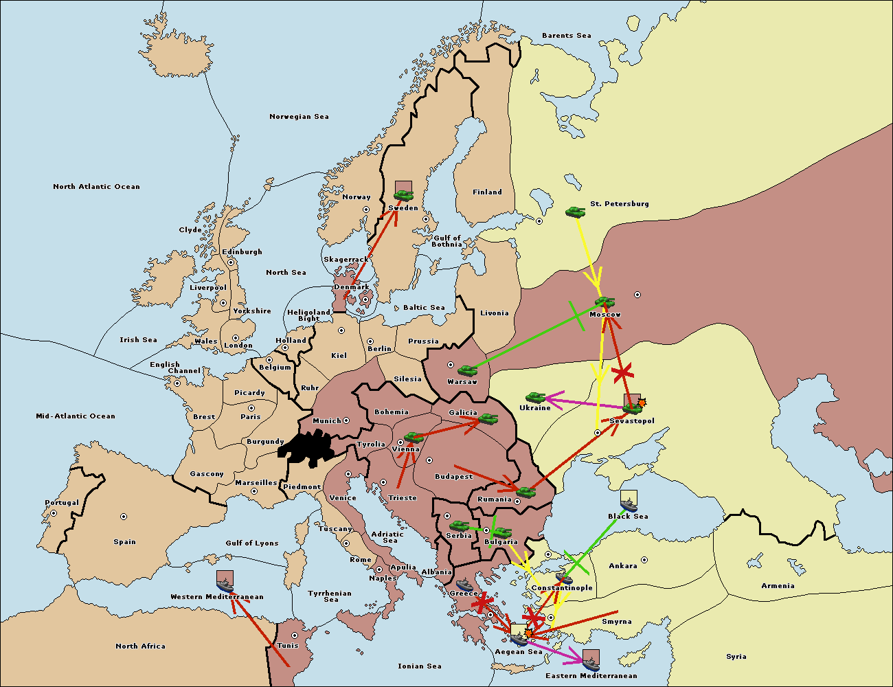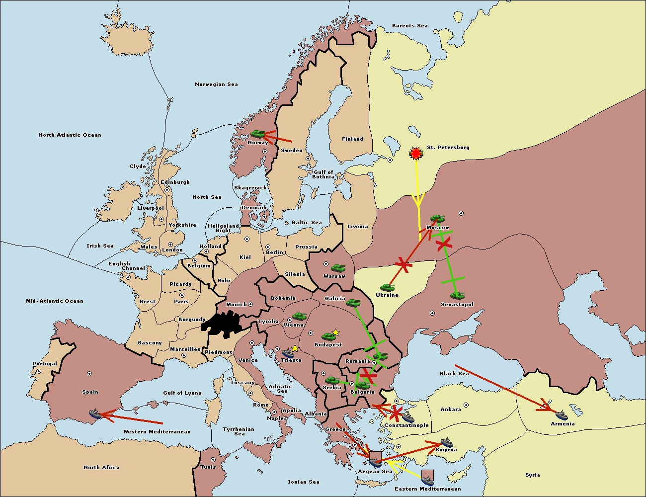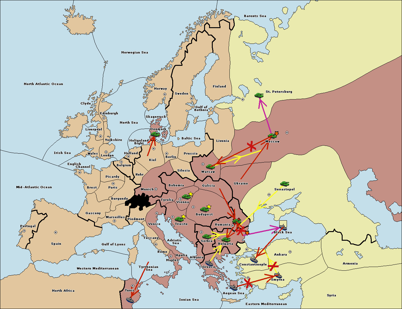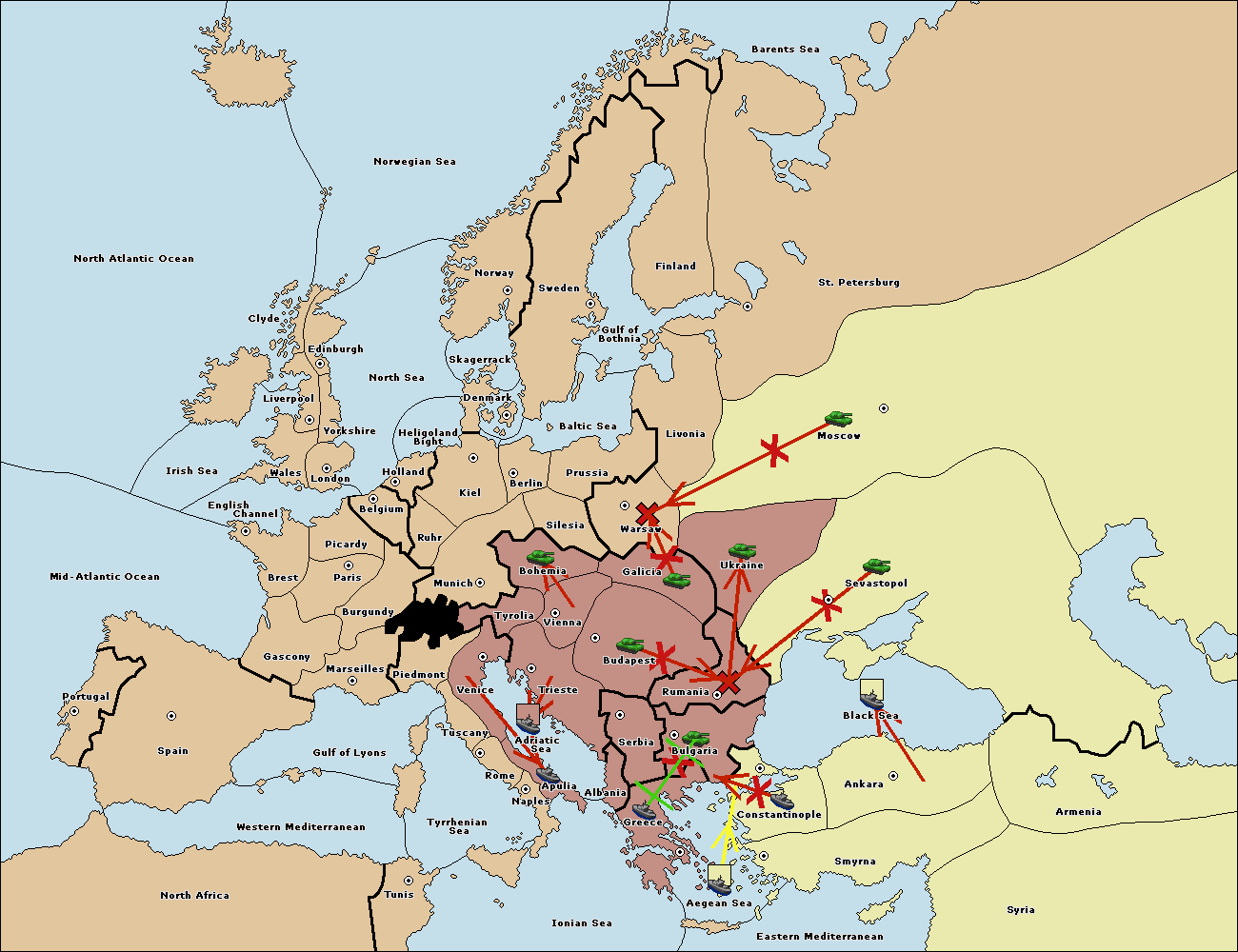 The fleet at Bulgaria (North Coast) move to Rumania.
