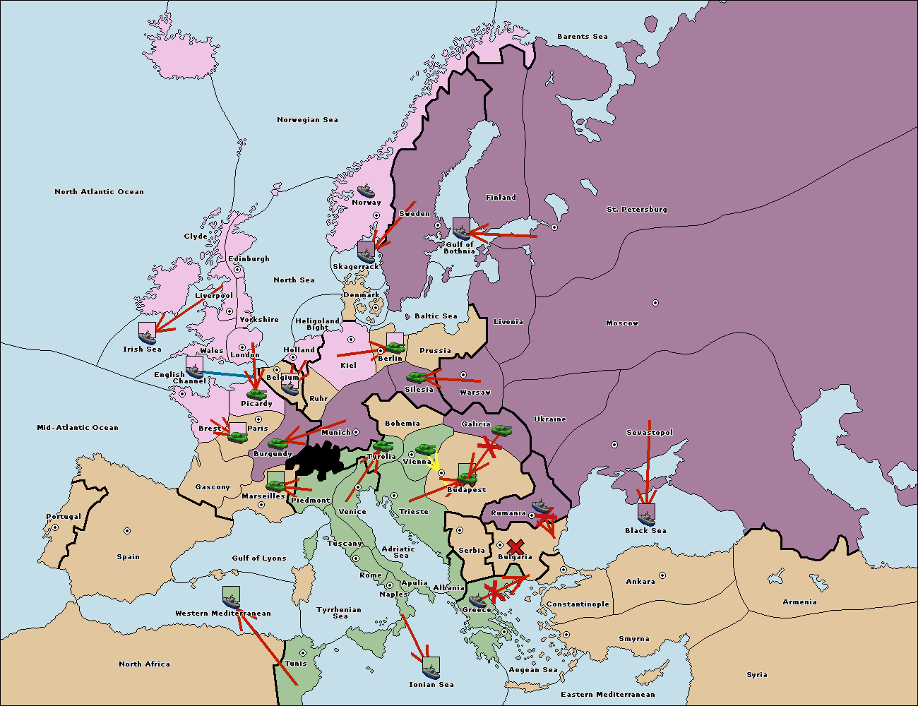 На сервере установлен новый вариант 1900. Вариация классического варианта с исторически более достоверной картой и большим взаимодействием между всеми семью державами. Приятной игры! - Flame.