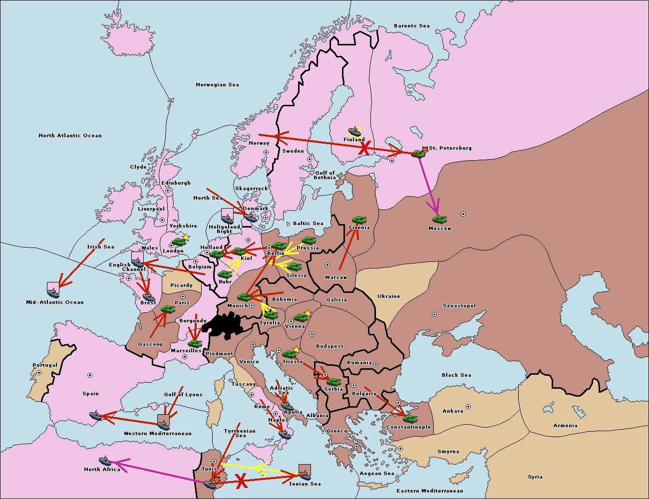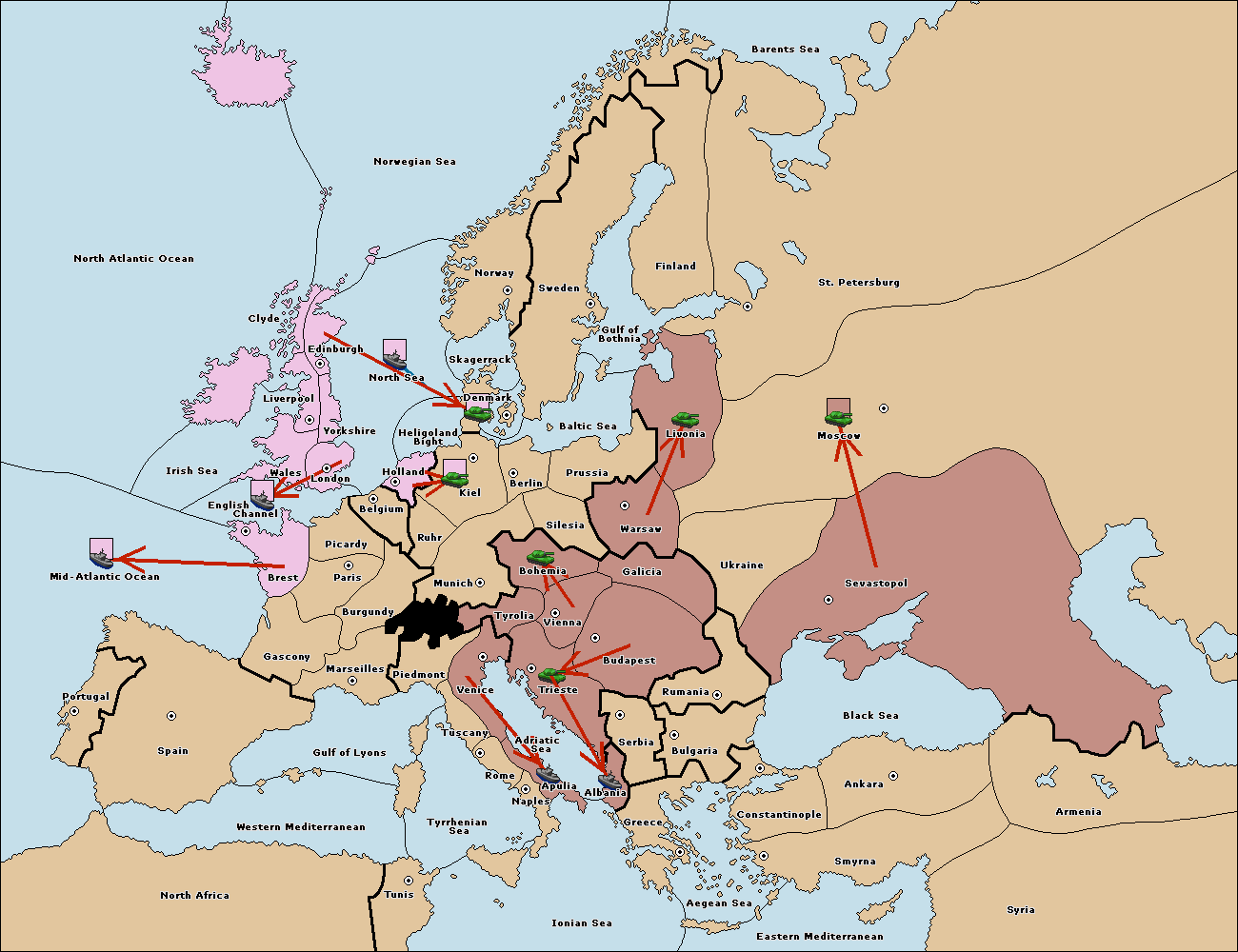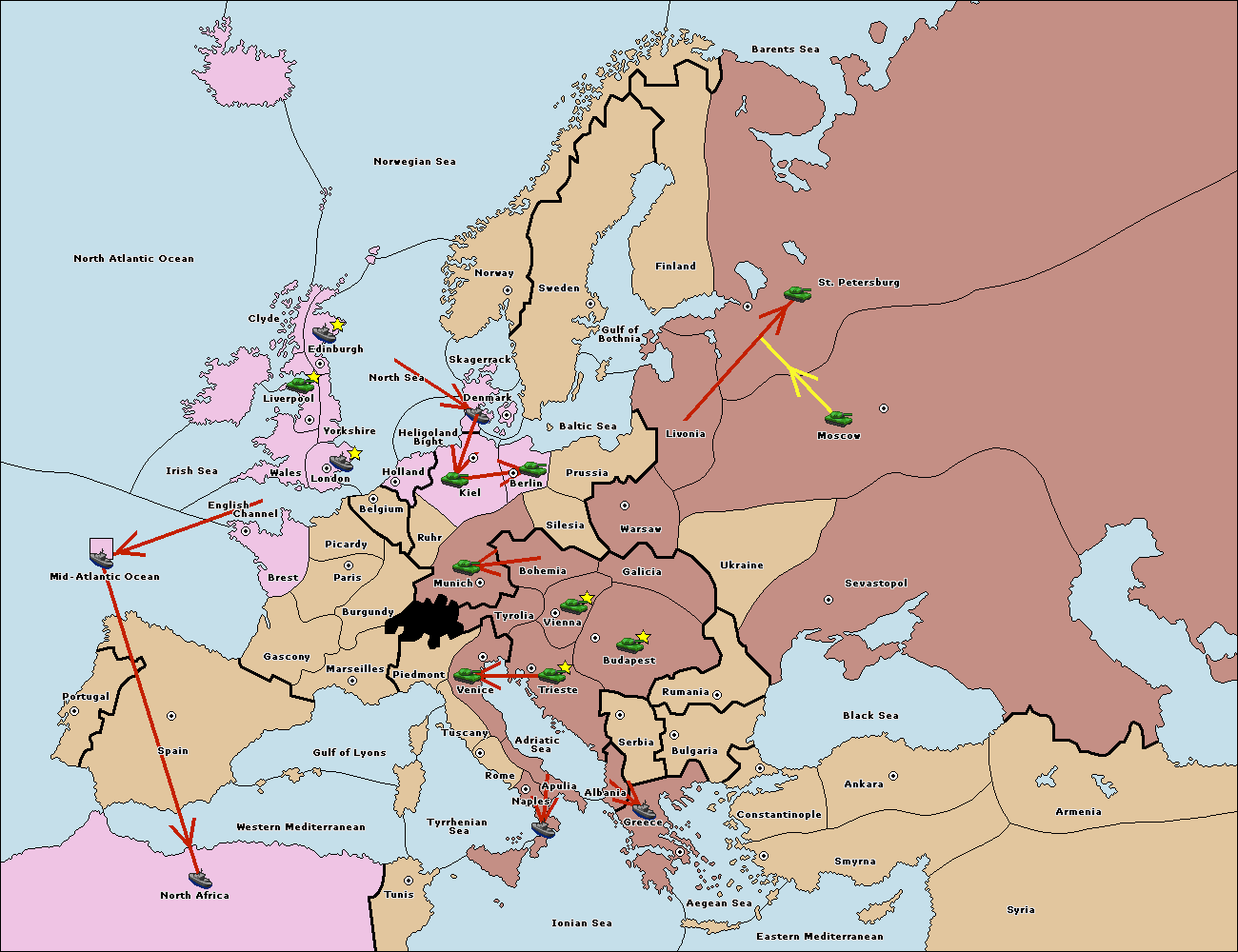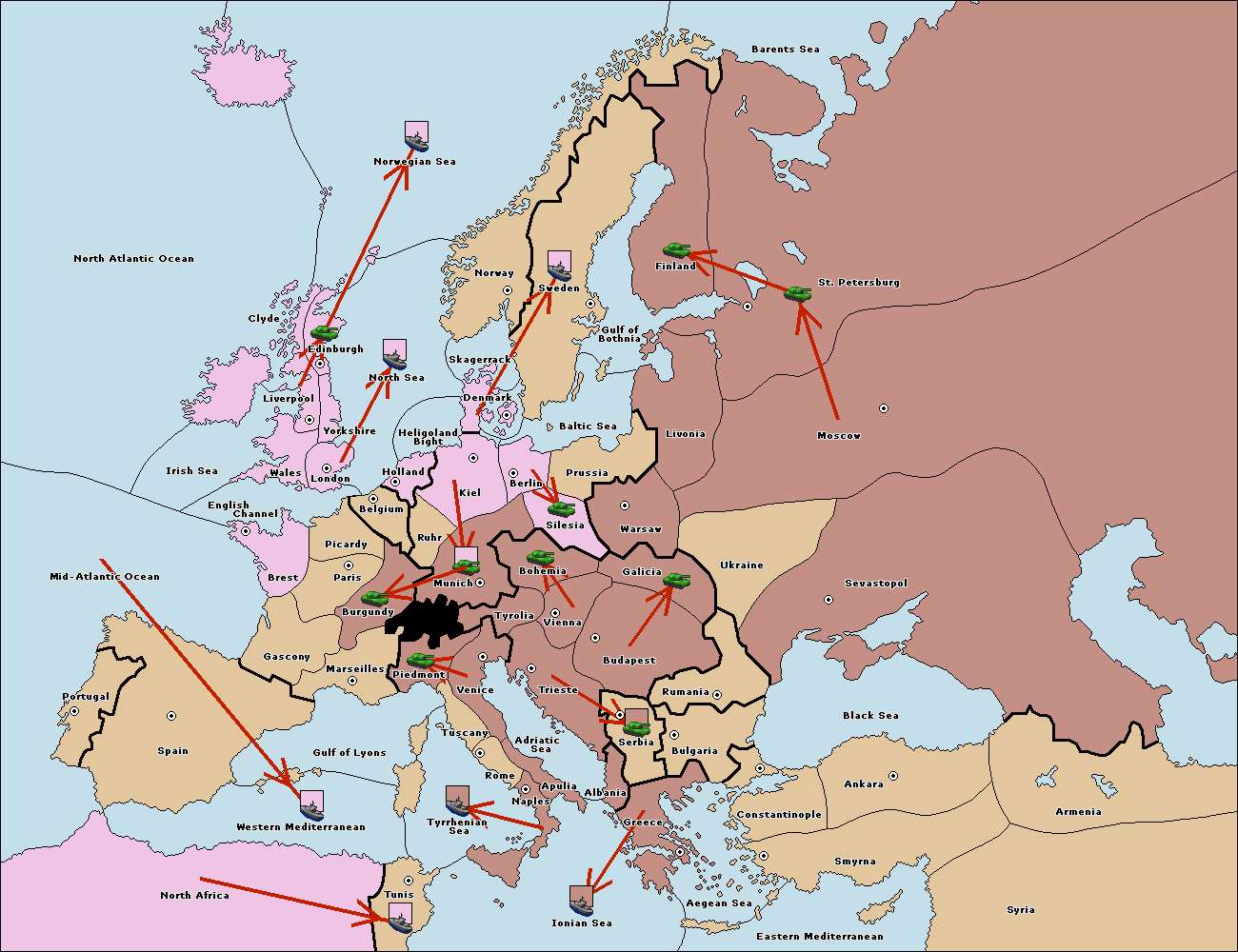 The fleet at Mid-Atlantic Ocean move to Western Mediterranean.