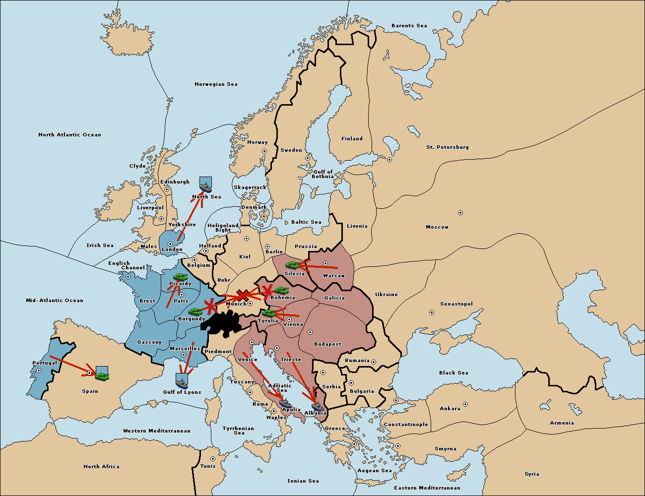 The fleet at Mid-Atlantic Ocean move to Western Mediterranean.