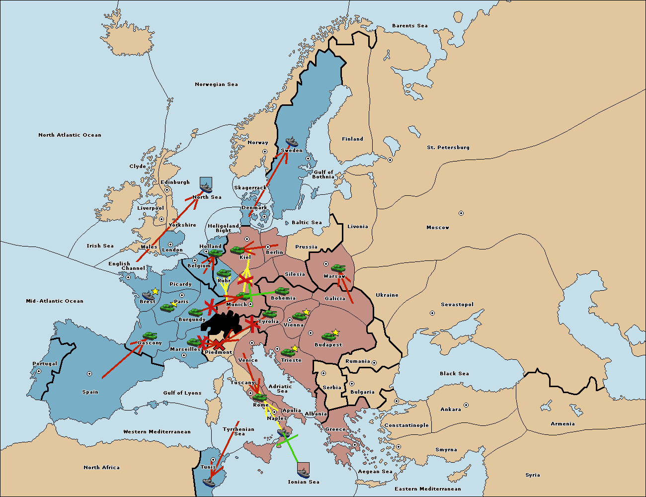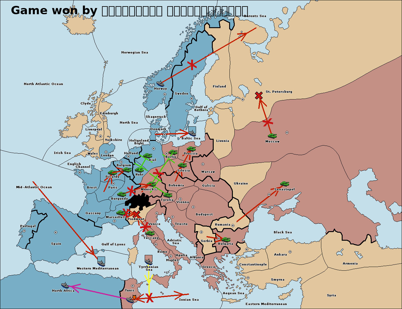 The fleet at Tyrrhenian Sea support move to Tunis from Ionian Sea.
