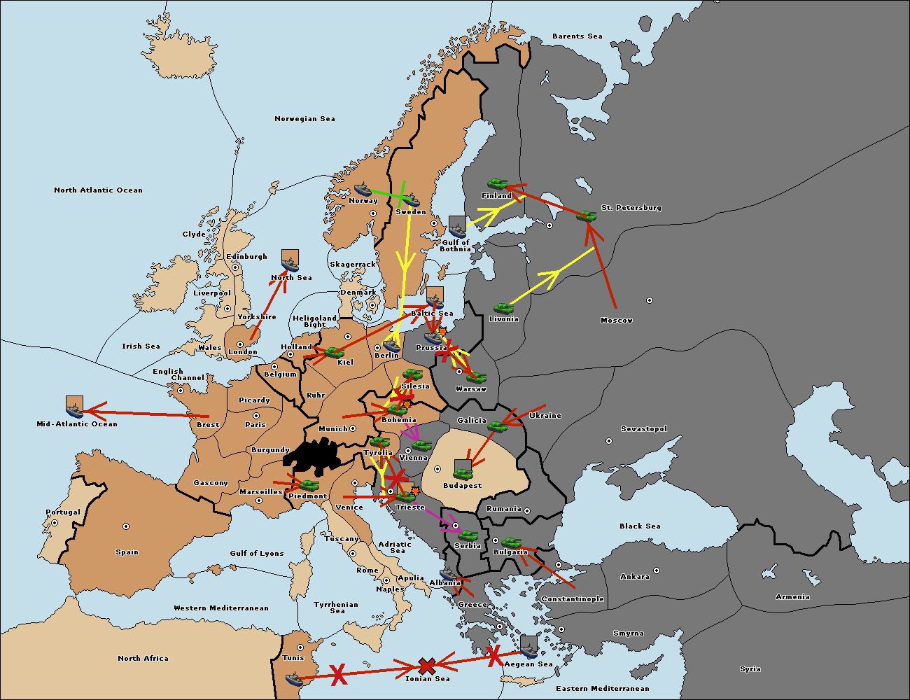 The fleet at Barents Sea move to St. Petersburg (North Coast).