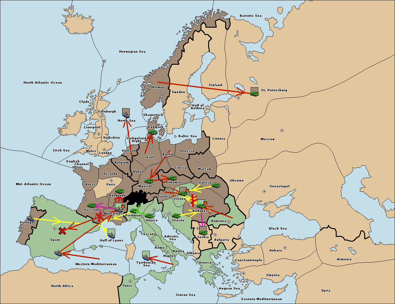 The fleet at Spain (South Coast) support hold to Marseilles.