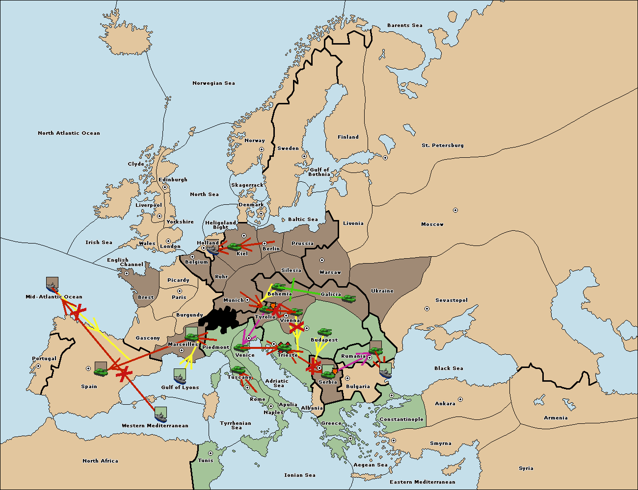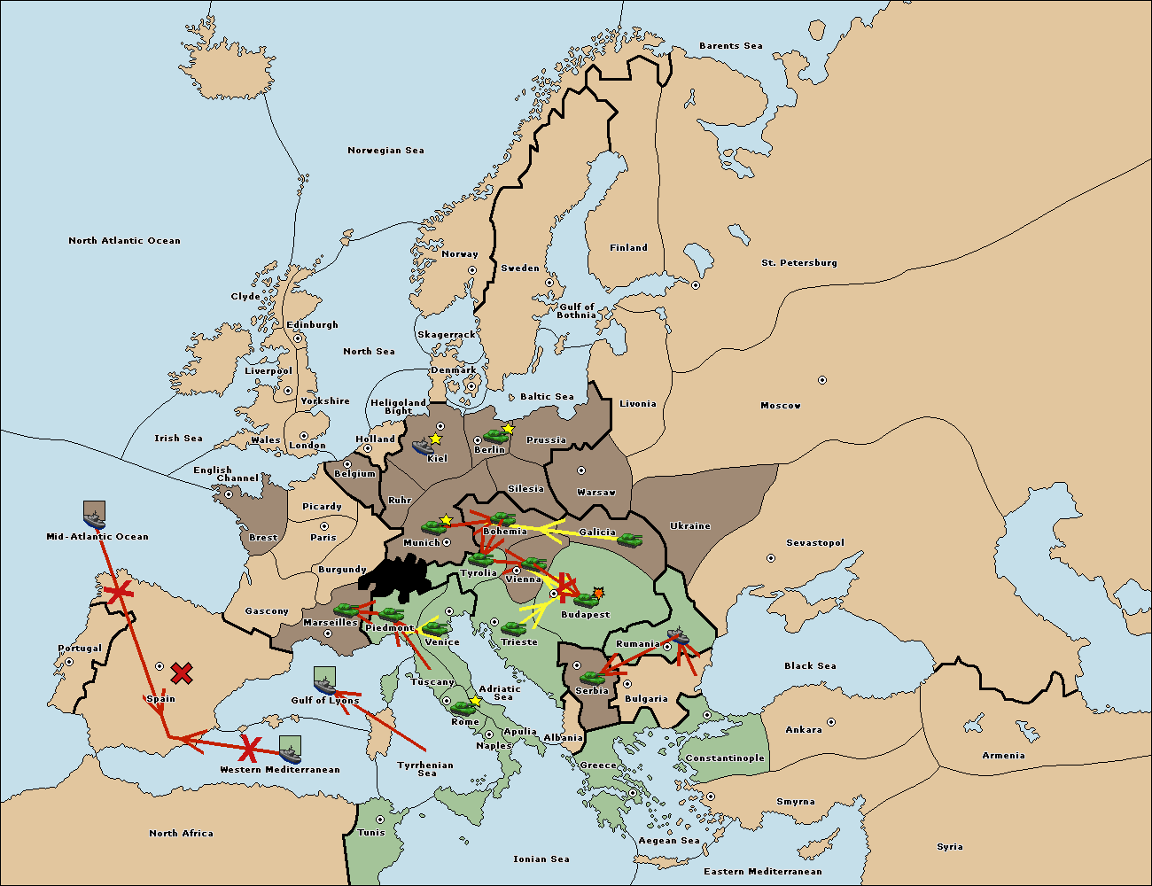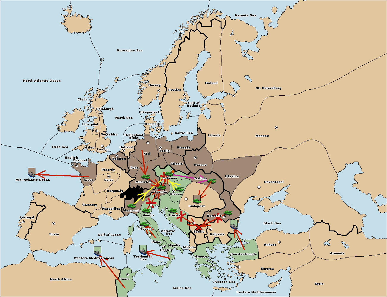 The army at Tyrolia move to Vienna.