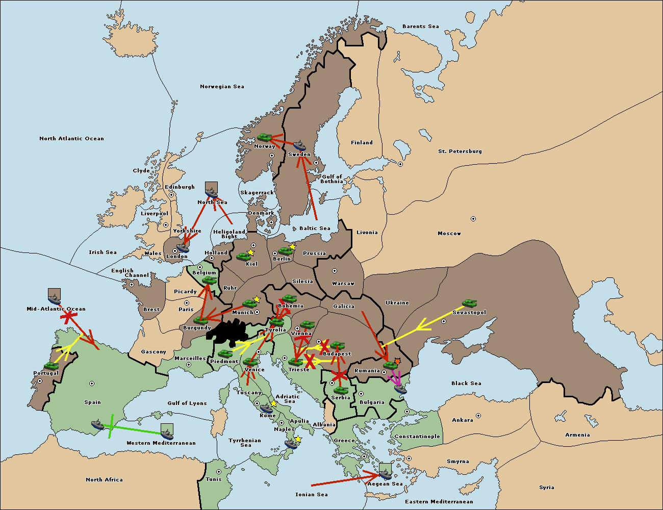 The fleet at Bulgaria (North Coast) move to Rumania.