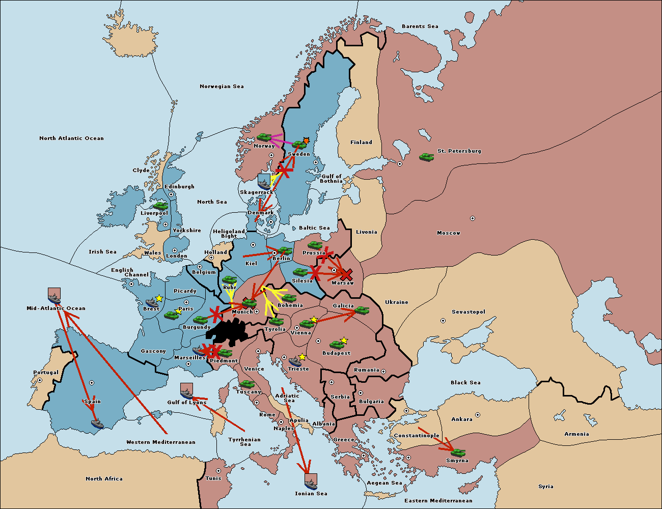 The fleet at Spain (South Coast) move to Western Mediterranean.