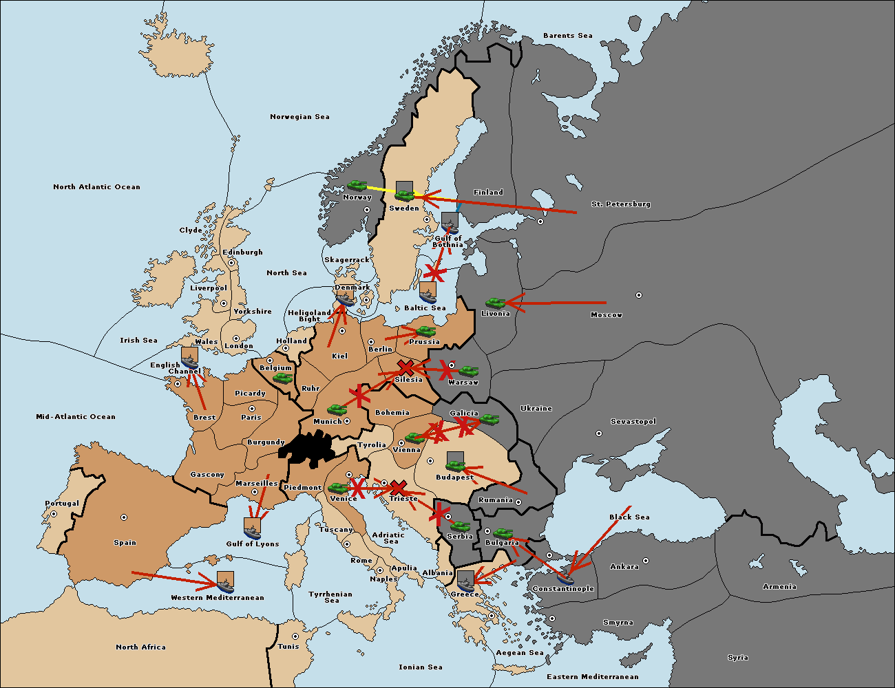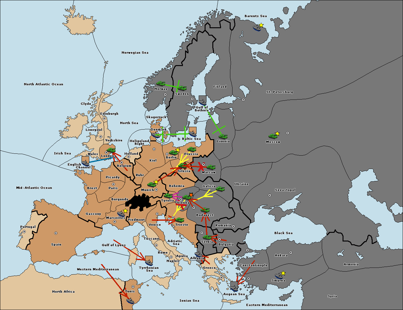 The fleet at Bulgaria (South Coast) move to Greece.
