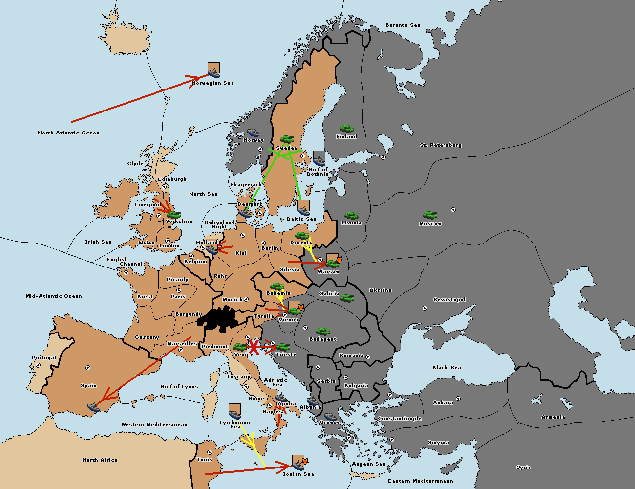 The fleet at Spain (South Coast) move to Western Mediterranean.