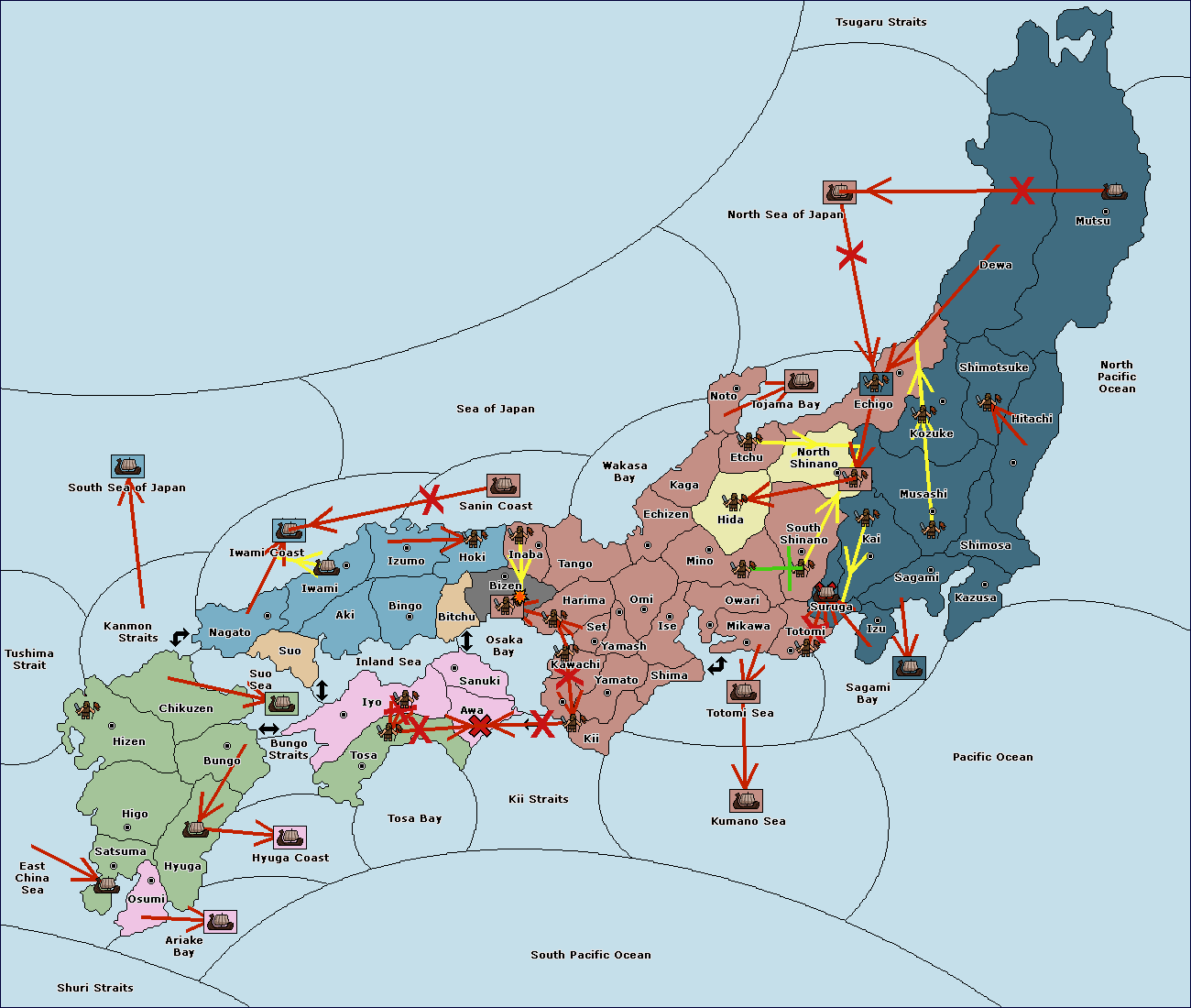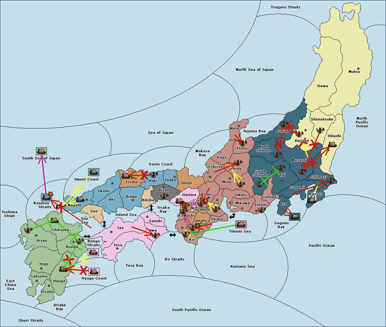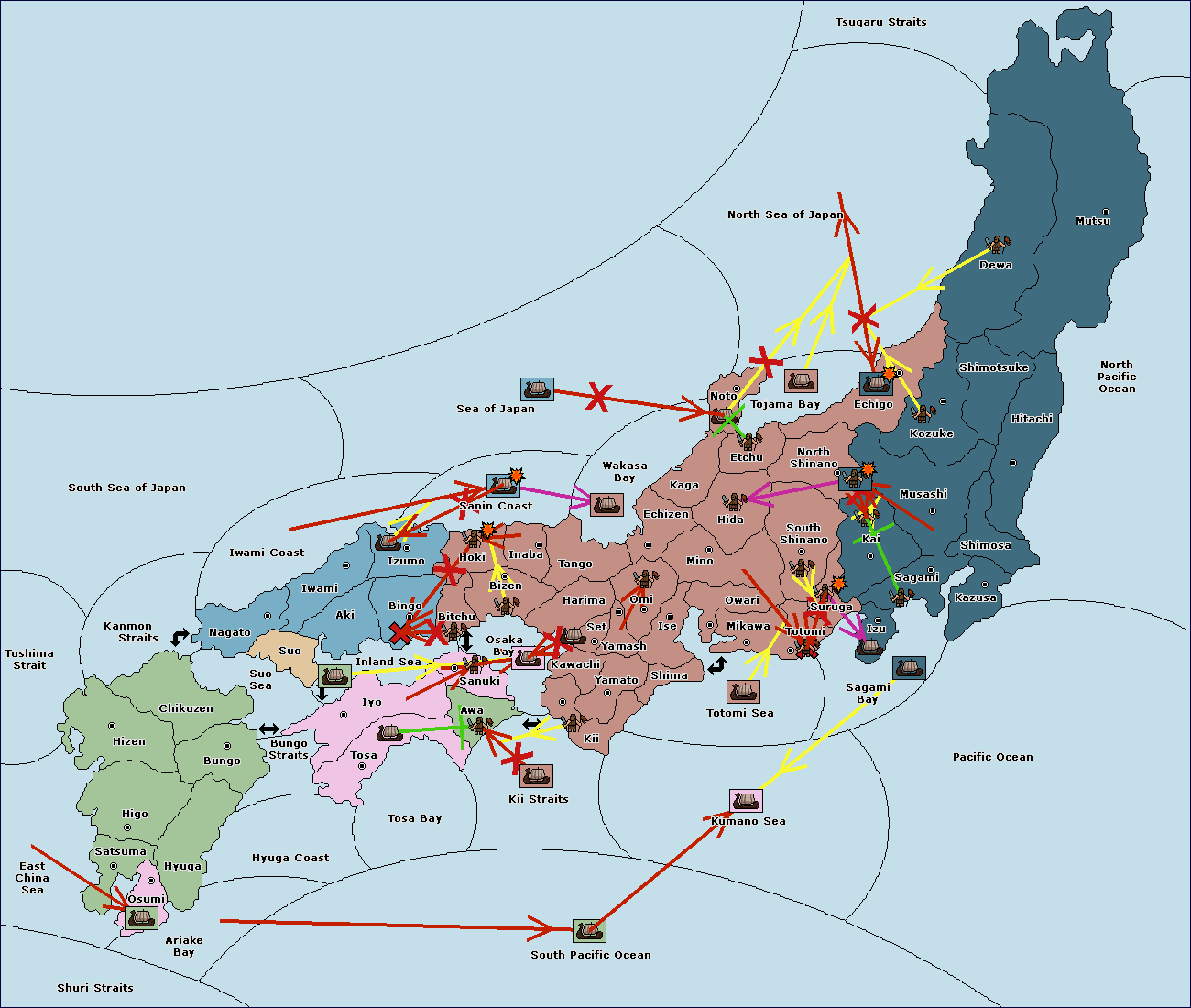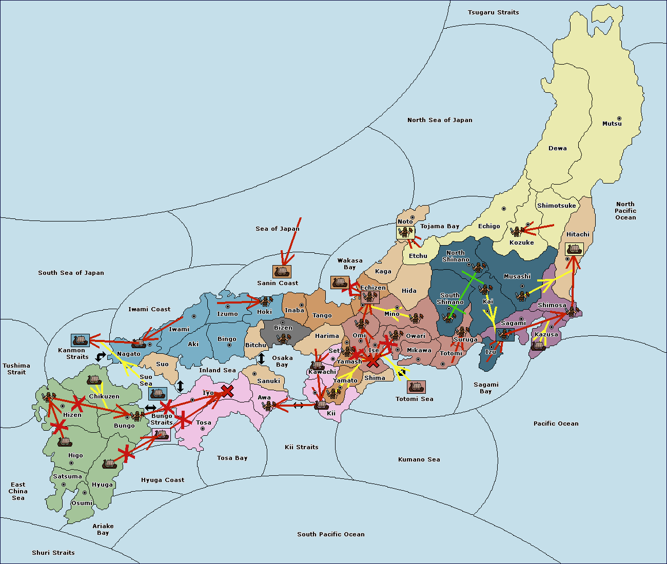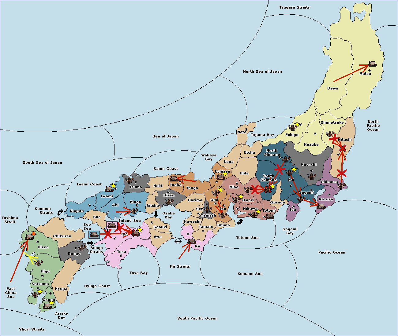 The fleet at Settsu (4) move to Kawachi (3).