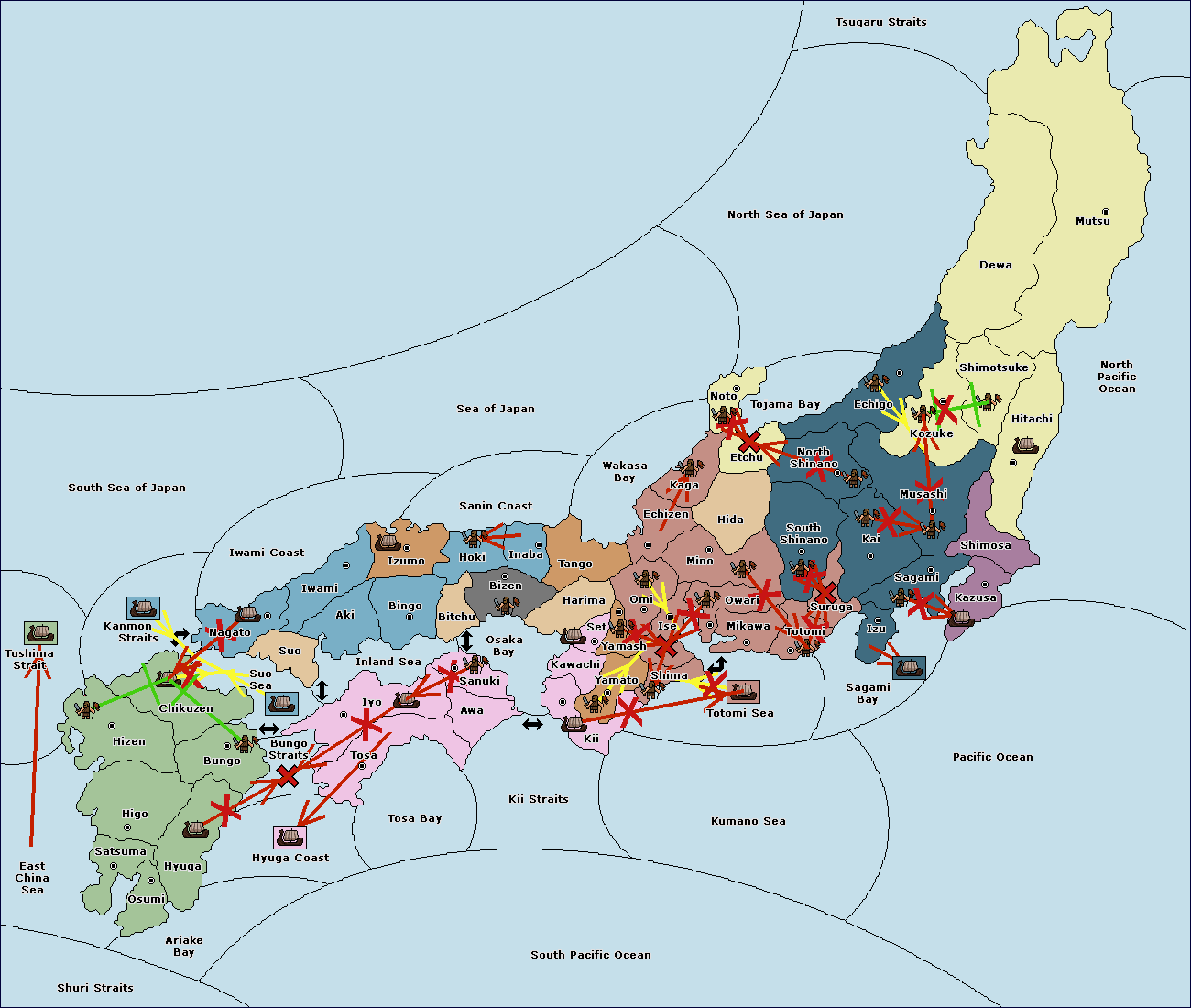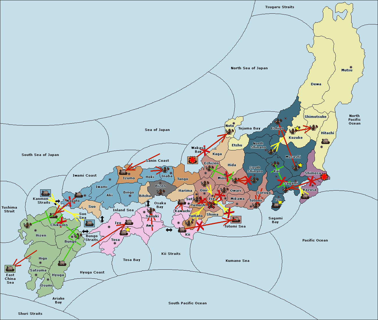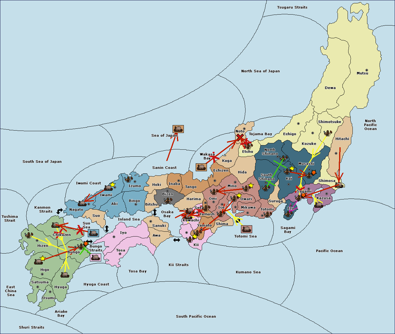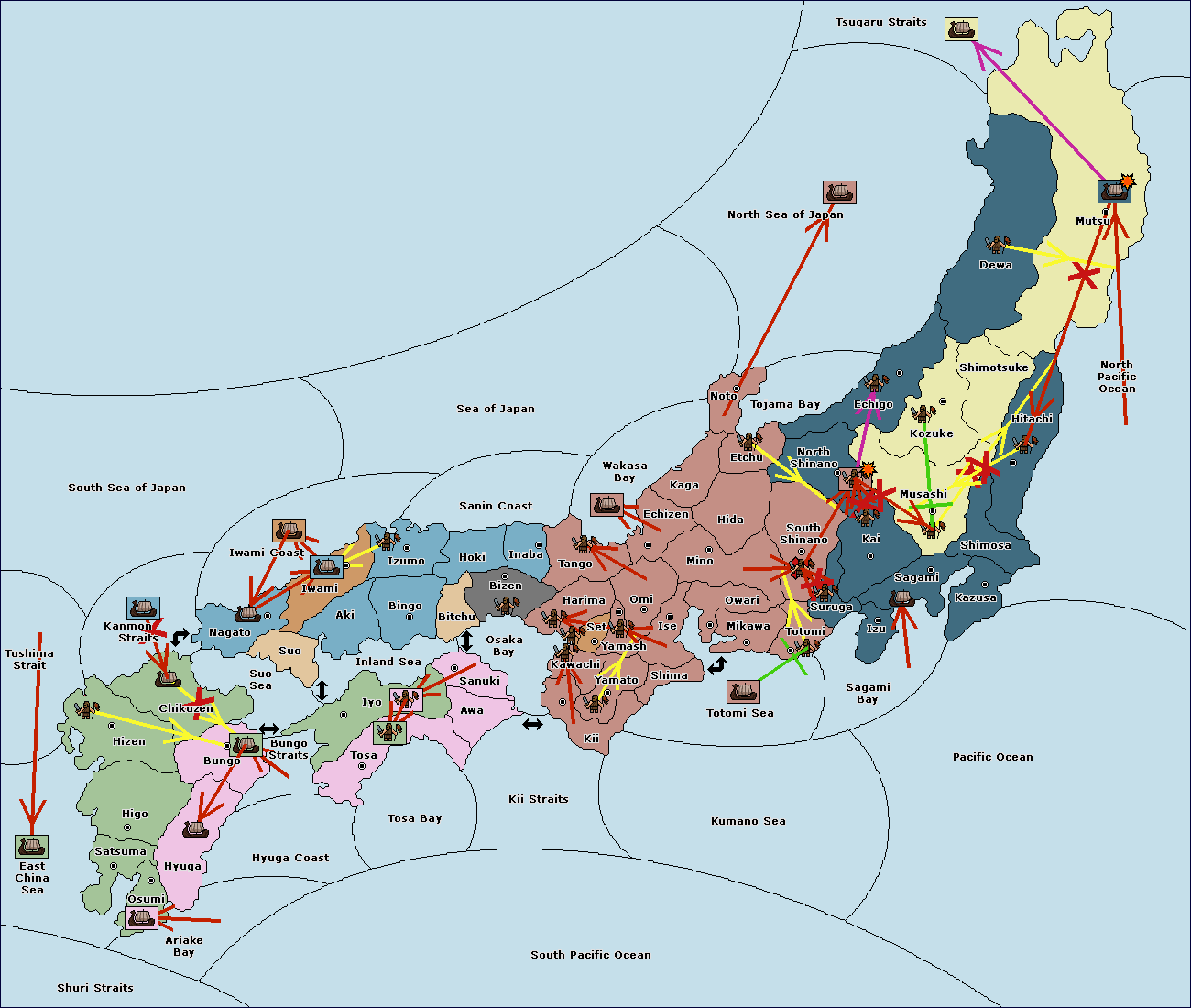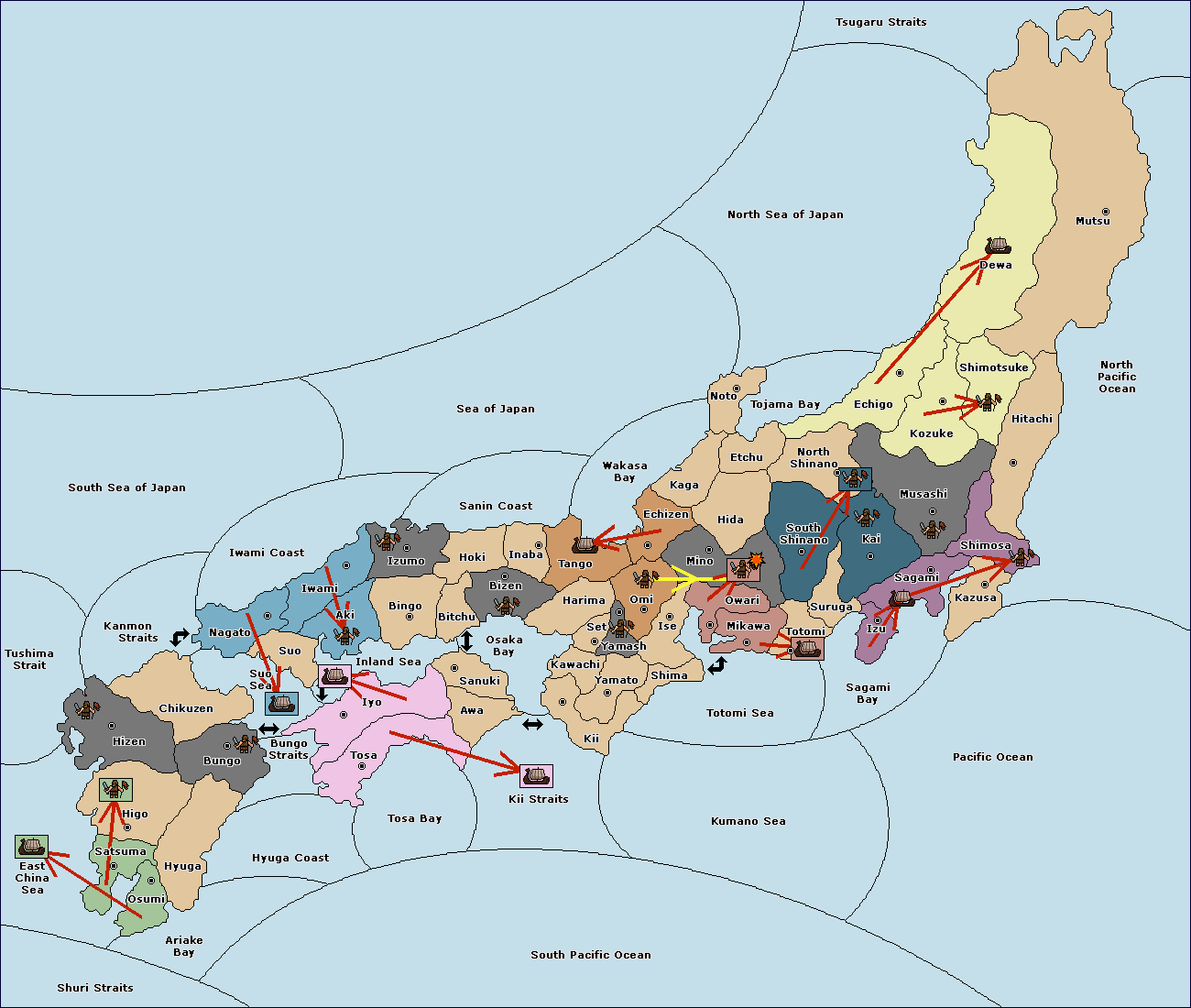The fleet at Settsu (4) move to Kawachi (3).