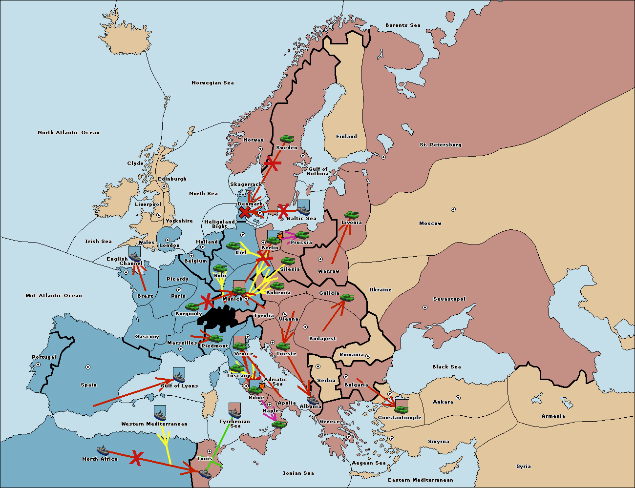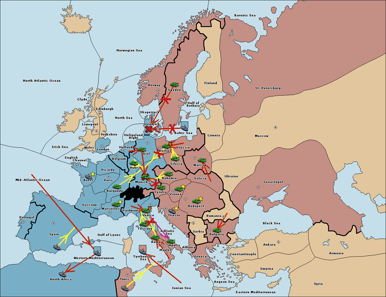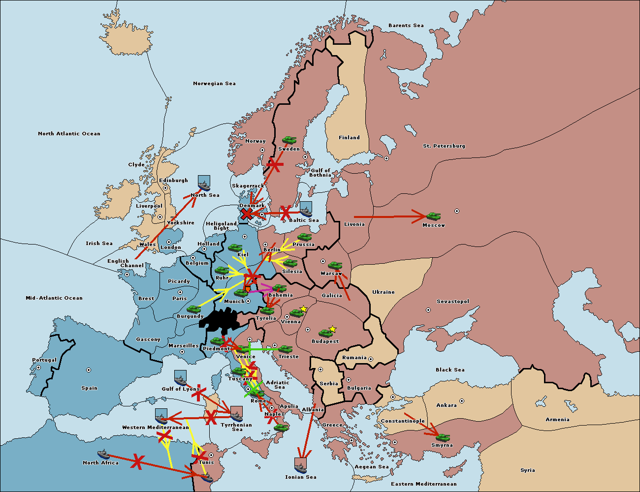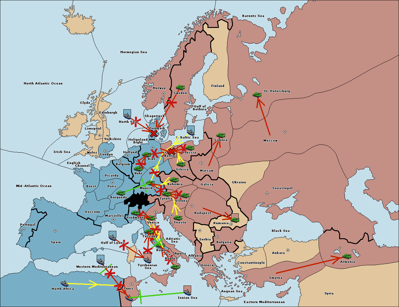 The fleet at Tyrrhenian Sea support hold to Tunis.