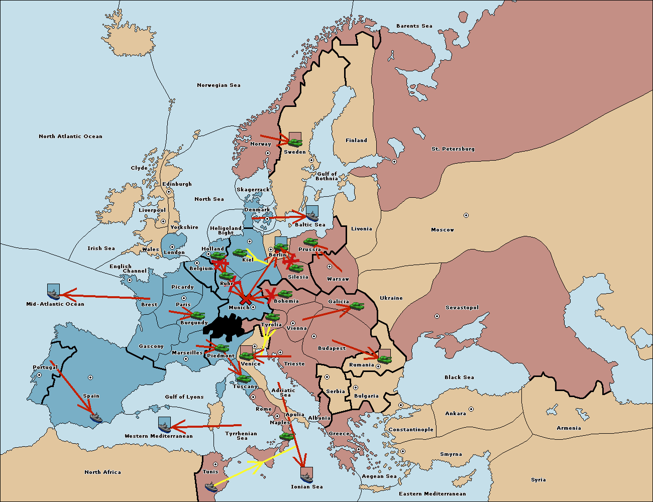 The fleet at Spain (South Coast) support move to Western Mediterranean from Mid-Atlantic Ocean.
