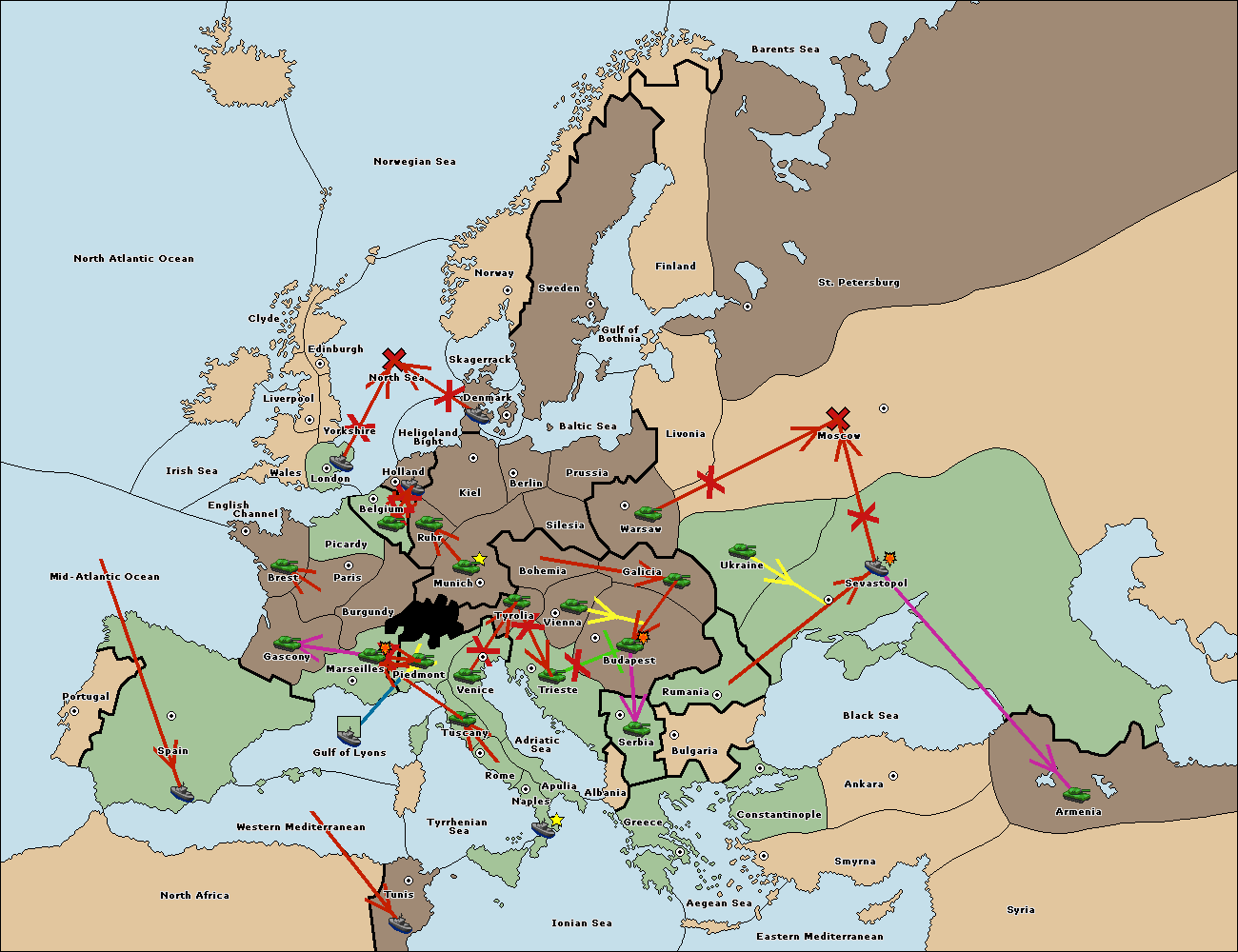The fleet at Spain (South Coast) support move to Marseilles from Piedmont.