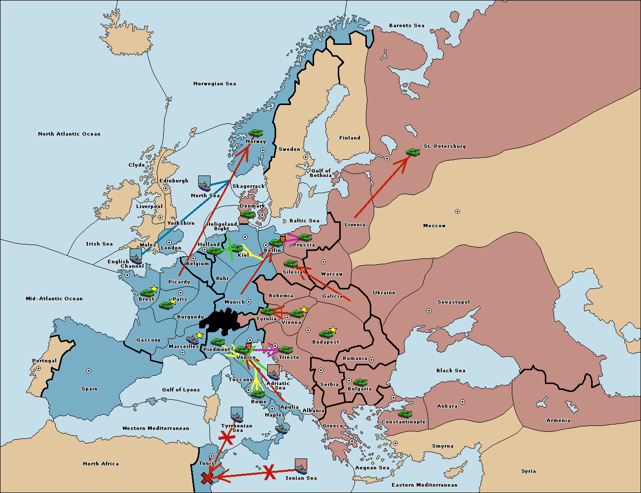 The fleet at Gulf of Lyons move to Tyrrhenian Sea.