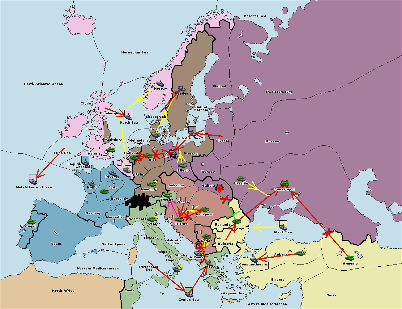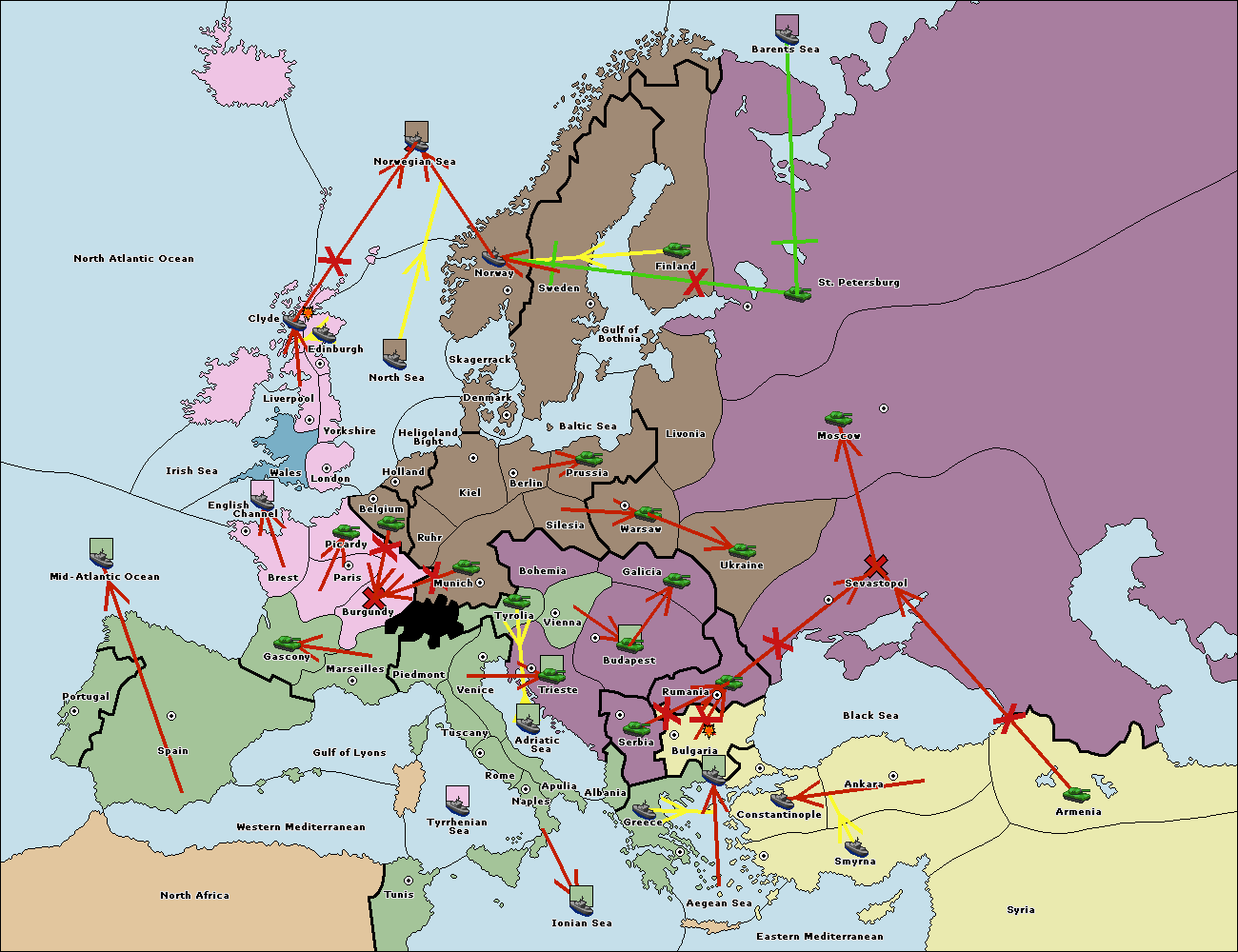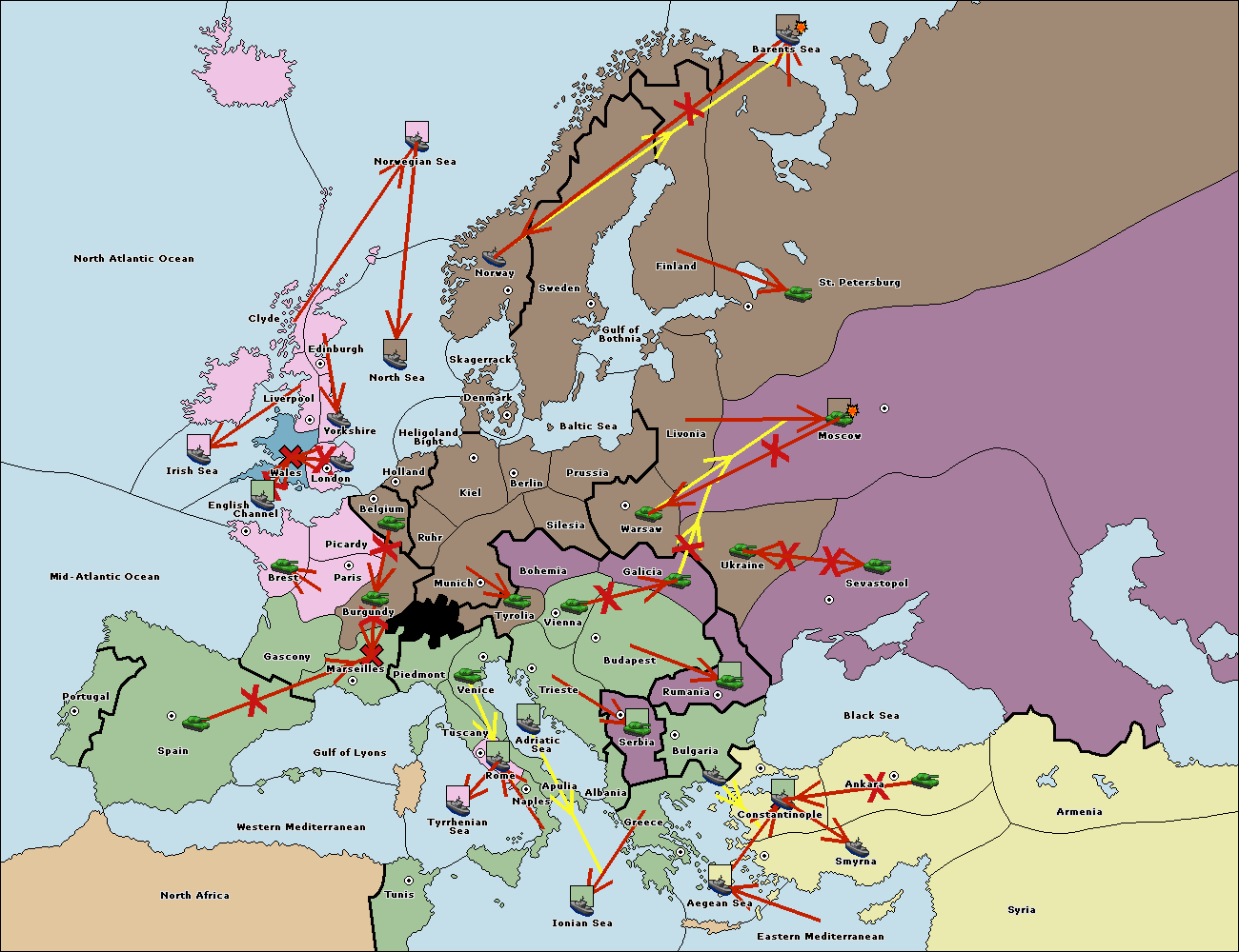 The fleet at Mid-Atlantic Ocean move to Western Mediterranean.