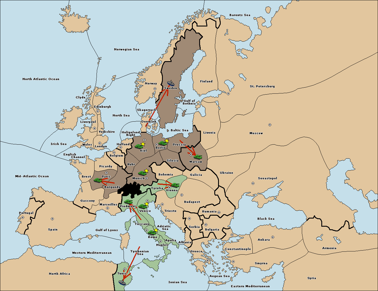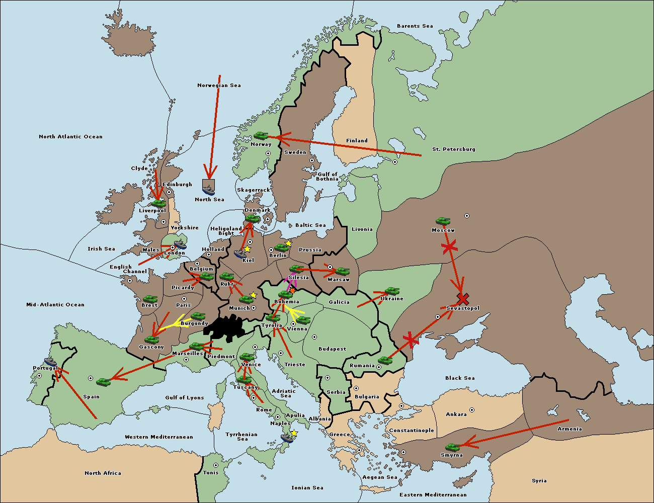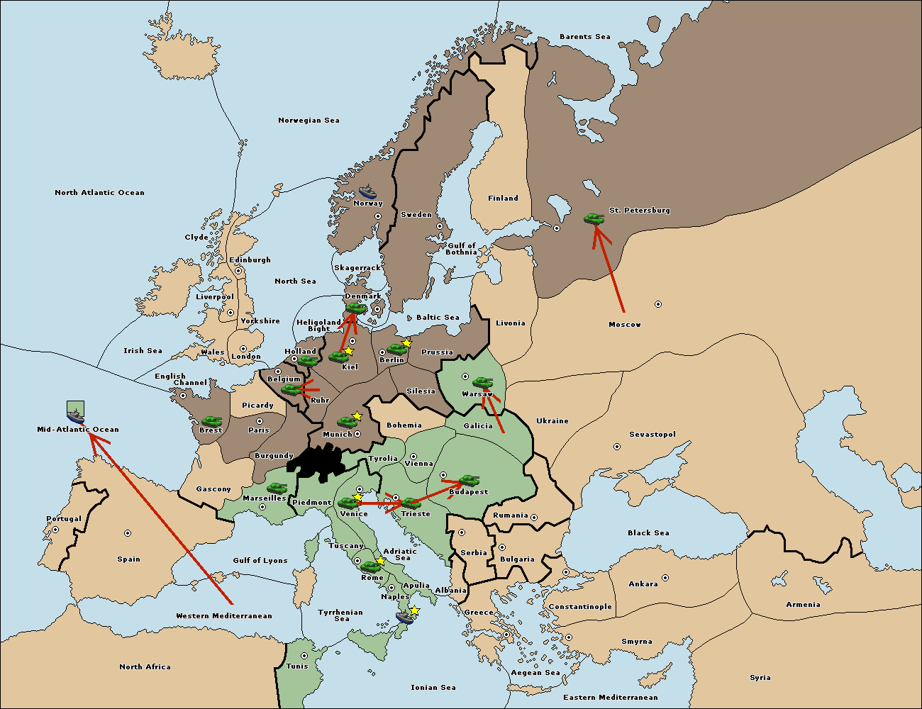 The fleet at Spain (South Coast) support hold to Marseilles.