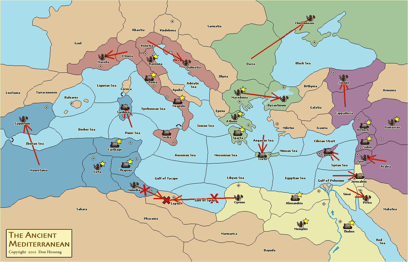 The fleet at Berber Sea support move to Sardinia from Punic Sea.