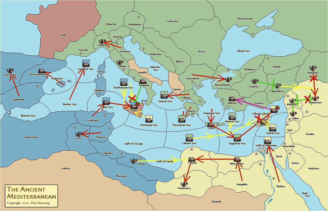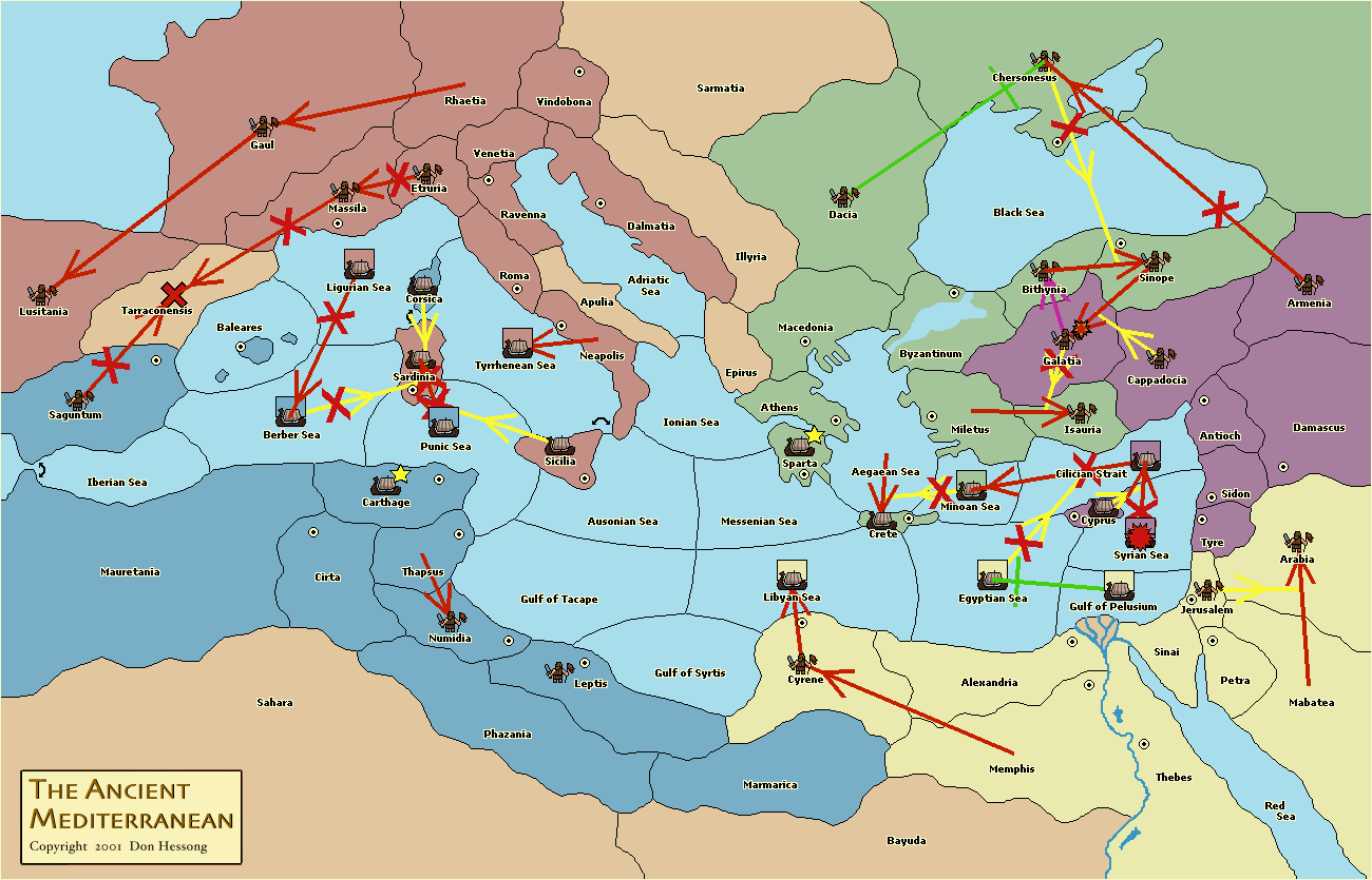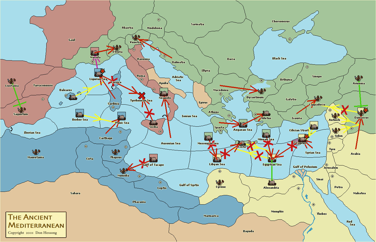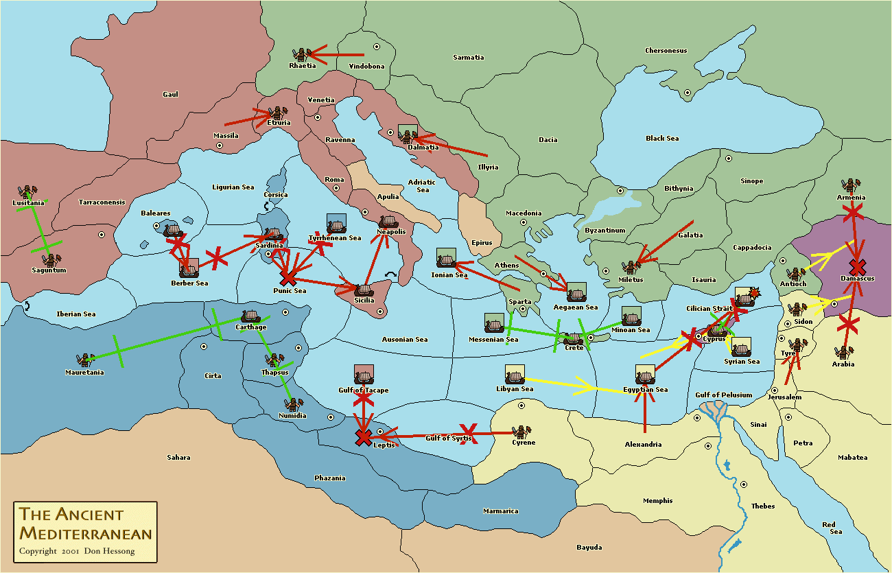 The fleet at Egyptian Sea support move to Cilician Strait from Minoan Sea.