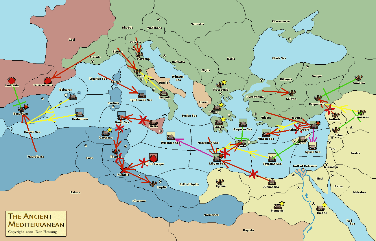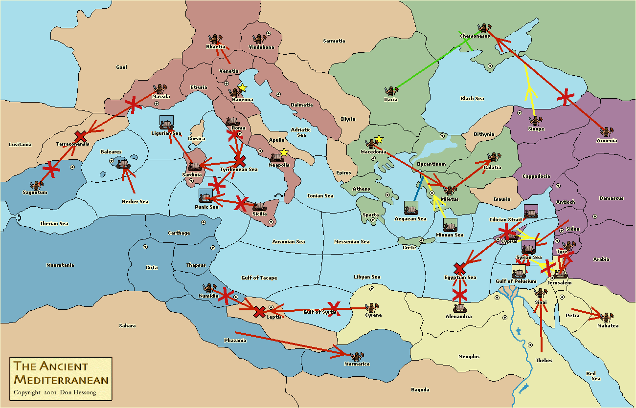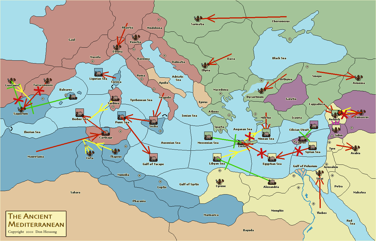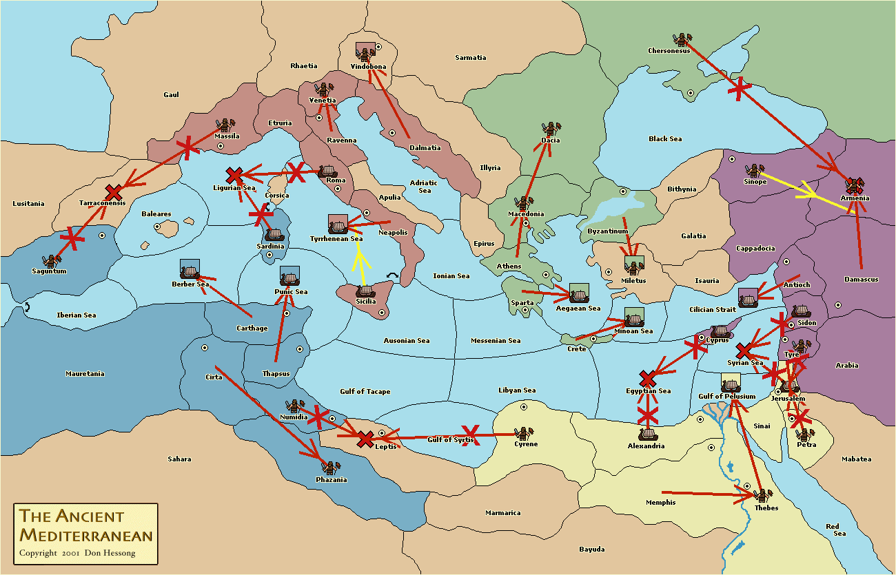 The fleet at Egyptian Sea support move to Cilician Strait from Minoan Sea.