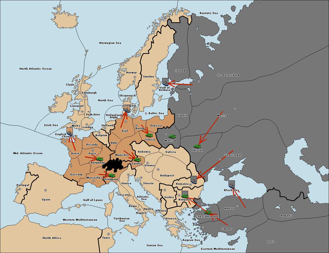 The fleet at St. Petersburg (South Coast) move to Gulf of Bothnia.