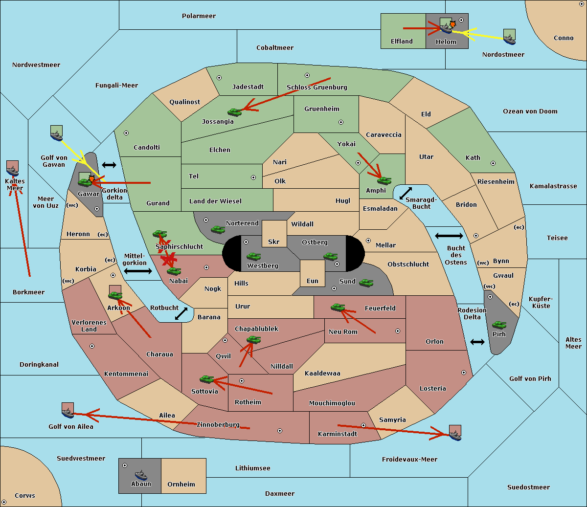 The fleet at Kaltes Meer move to Golf von Gawan.
