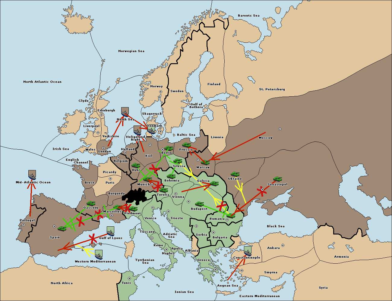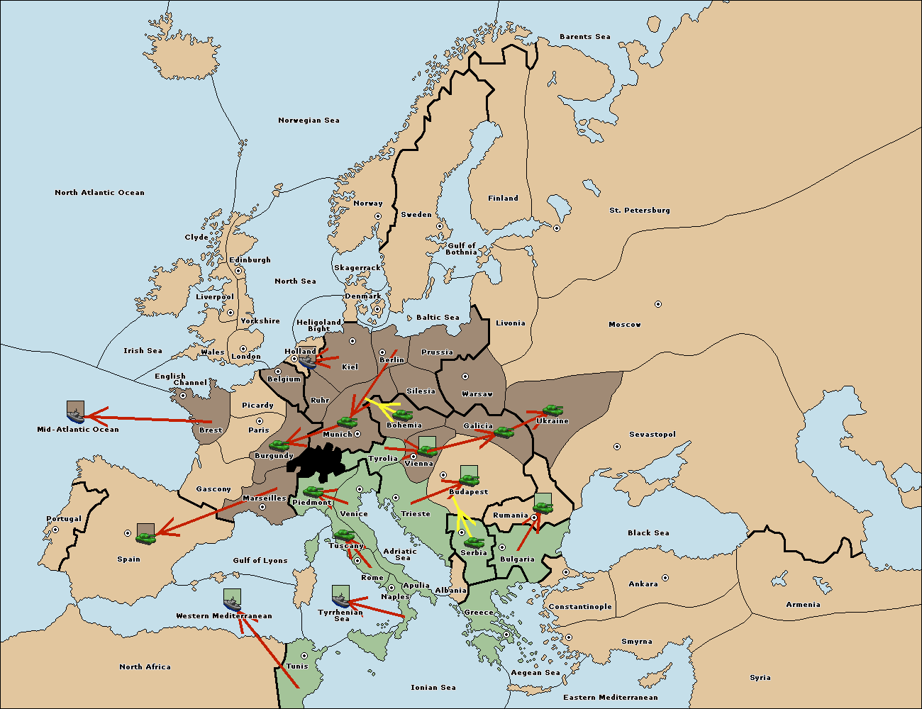 The fleet at Mid-Atlantic Ocean move to Western Mediterranean.