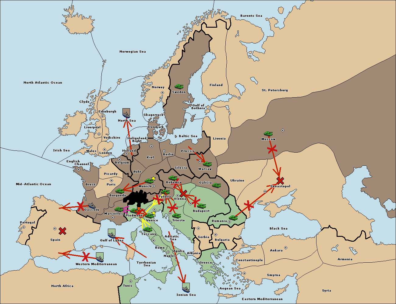 The fleet at Tyrrhenian Sea move to Gulf of Lyons.