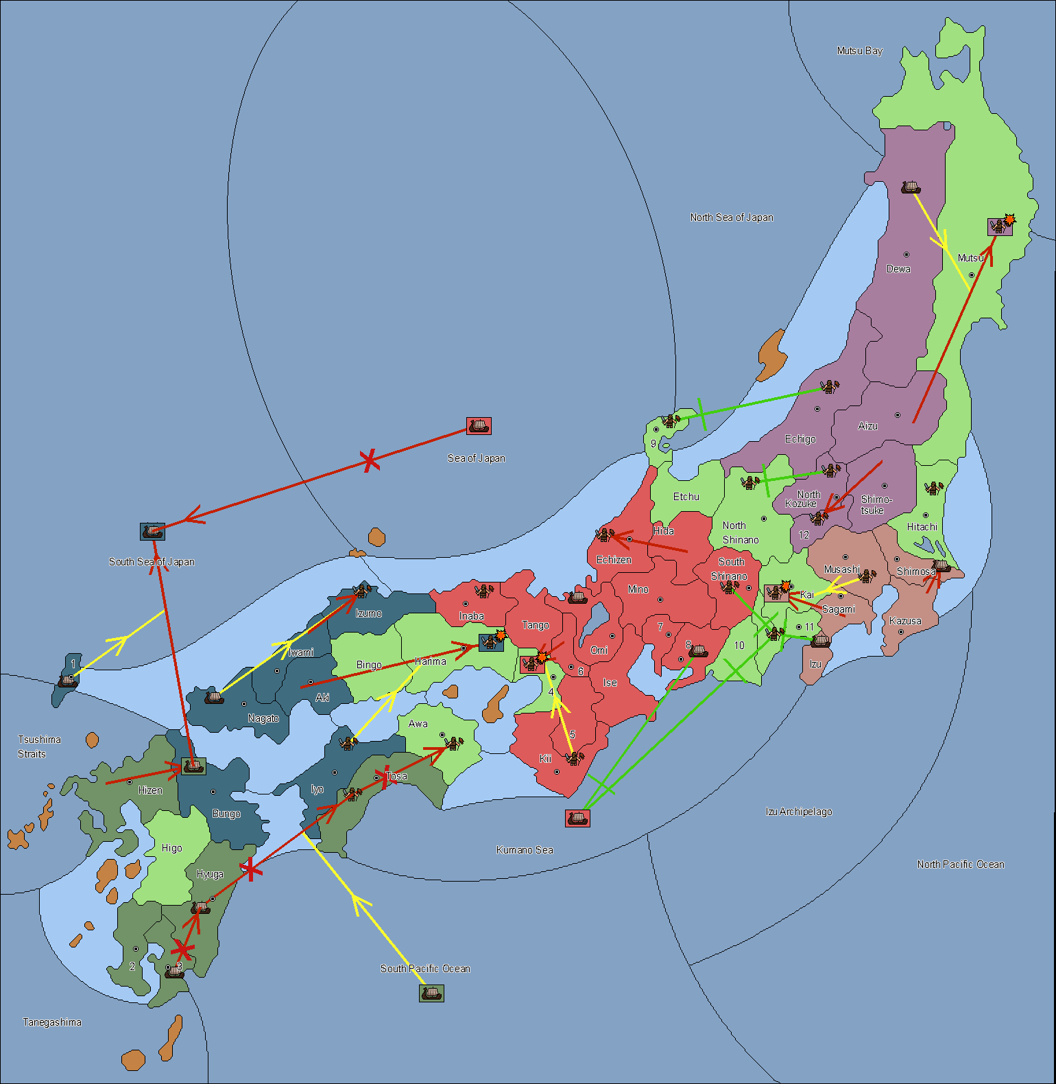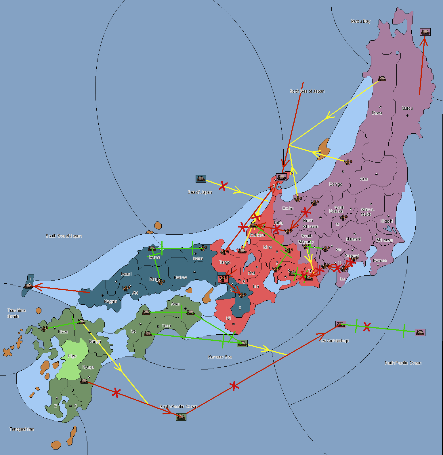 The army at Settsu (4) support move to Awa from Tosa.